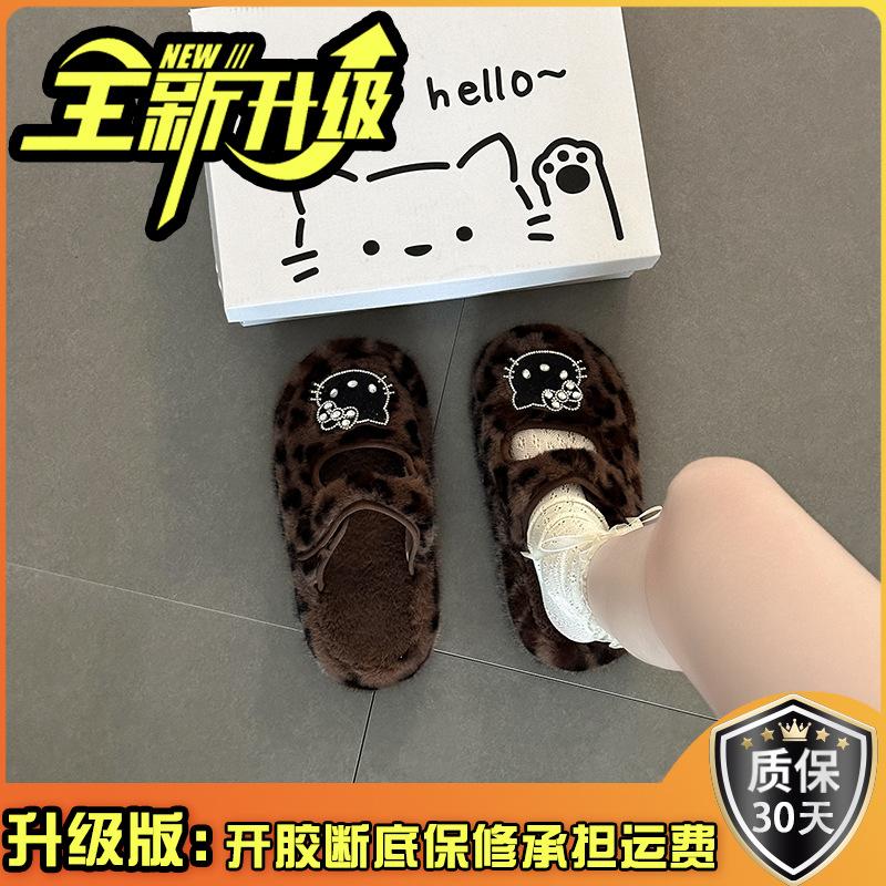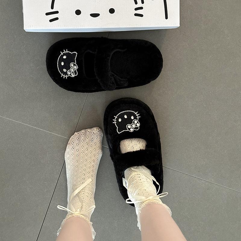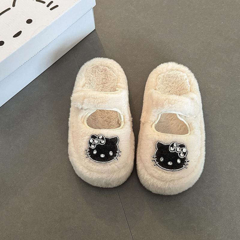 Милые мультяшные тапочки Hello Kitty с толстой подошвой и плюшевыми звездочками, новая модель осень-зима 2025, женская верхняя одежда в стиле панк.