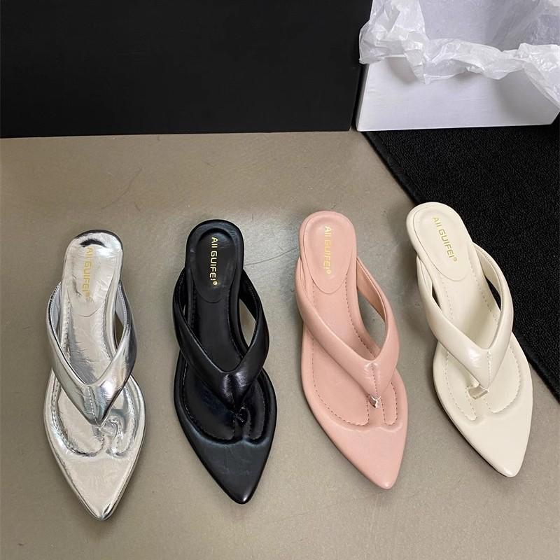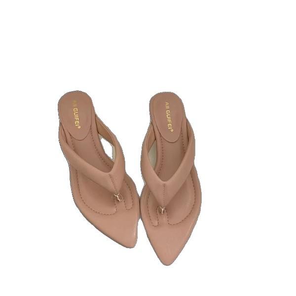 2025 новый летний розовый острый носок средний каблук крутые шлепанцы танкетка шлепанцы носить щипок сандалии