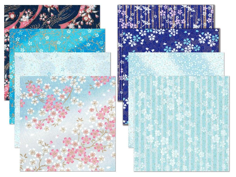 Kawasumi Washi Special Selection Blue Chiyogami Yuzen Washi 8 Patterns Hand-Dyed Paper, 15cm,