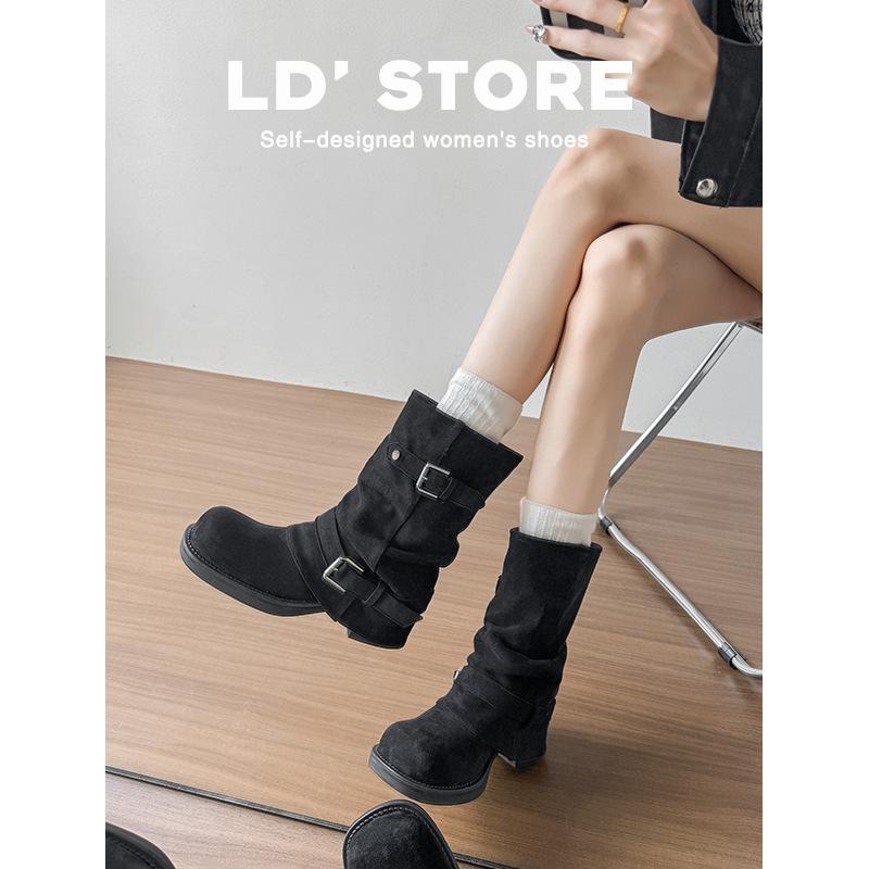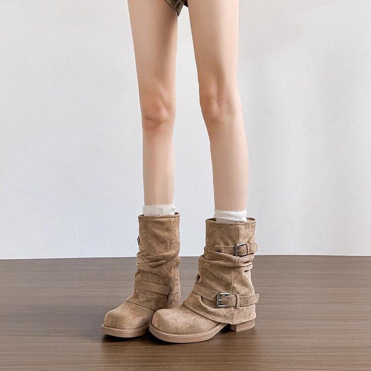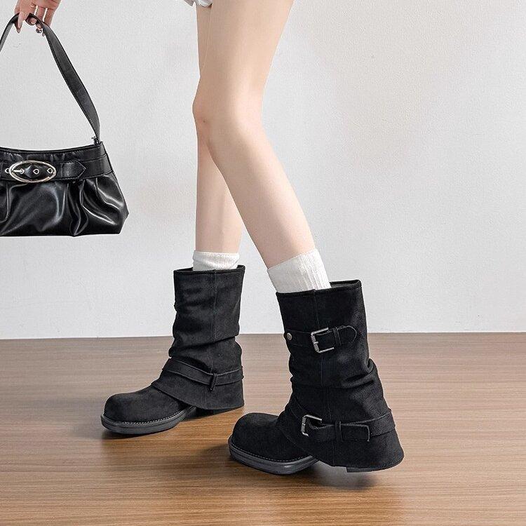 Оставь это себе~ Женские осенне-зимние ретро рыцарские ботинки Мартин на толстой подошве, ковбойские ботинки в западном стиле, плиссированные, с присборенным голенищем, на толстом каблуке, с широким голенищем, короткие