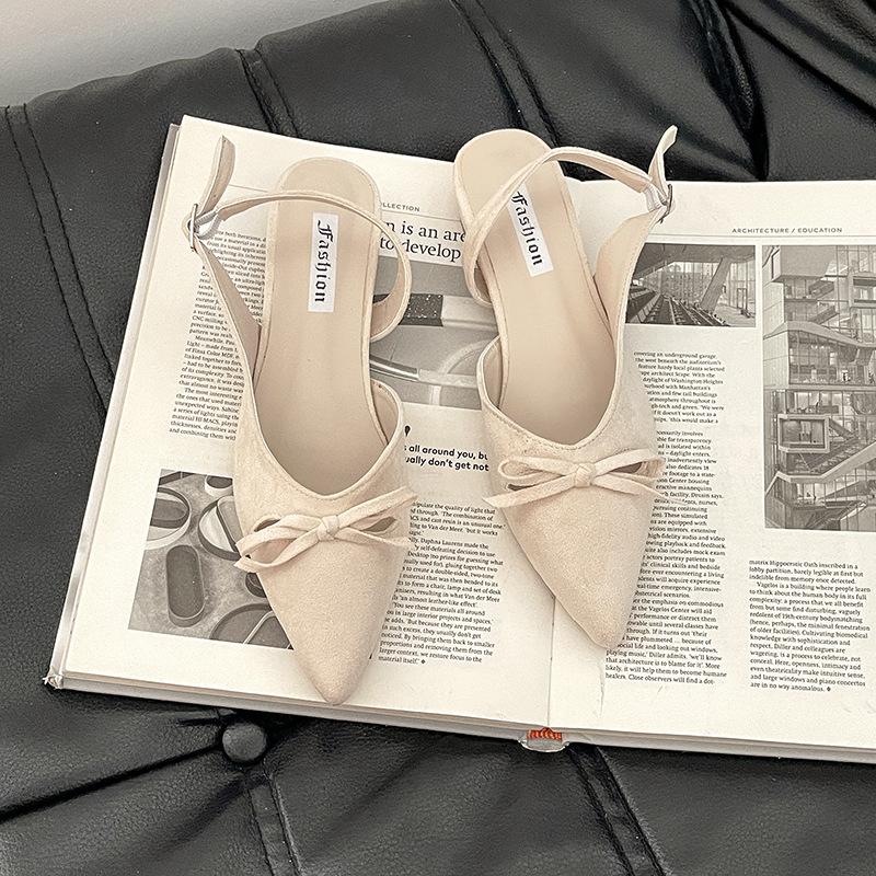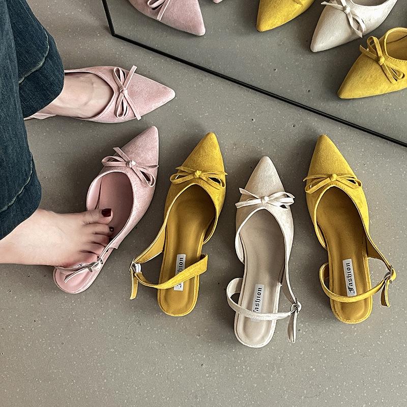Французские ретро изысканные сандалии с острым носком и бантом, женские 2025 лето, новые, темпераментные, универсальные, для верхней одежды, туфли
