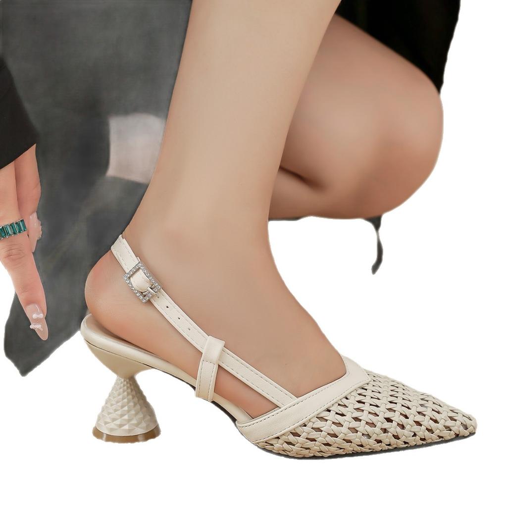 2025 новые французские нишевые темпераментные туфли на среднем каблуке с вырезами, абсолютные детские плетеные босоножки с ремешком на щиколотке и острым носком