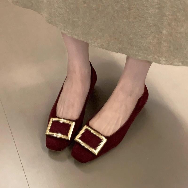 2025 осень новые металлические квадратные пряжки туфли с открытым вырезом женские на толстом каблуке с квадратным носком туфли Мэри Джейн ночной бриз обувь для работы