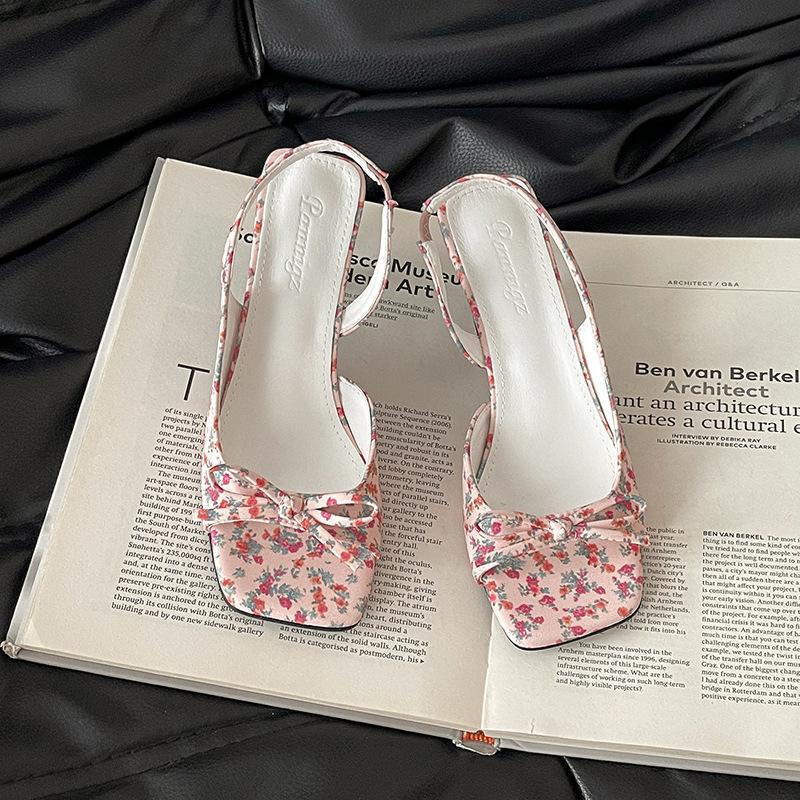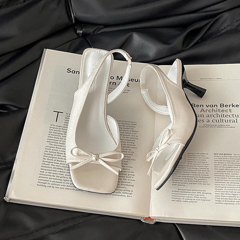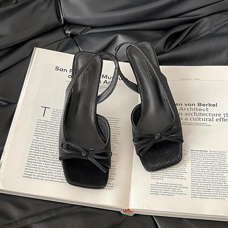 Exquisite and elegant square head bow open-toed sandals women's 2025 summer classic French temperament wear high-heeled sandals