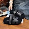 Европейские товары 2025 осень и зима новые кожаные на толстой подошве тапочки из овечьей шерсти женские носят знаменитости интернета на плоской подошве ленивые шерстяные тапочки