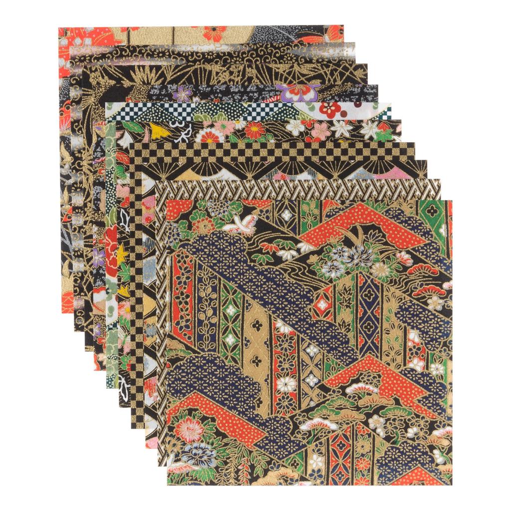 Kawasumi Washi Chiyogami Yuzen Washi 10 10 Черная бумага, 15x15см, Узоры, Листы,
