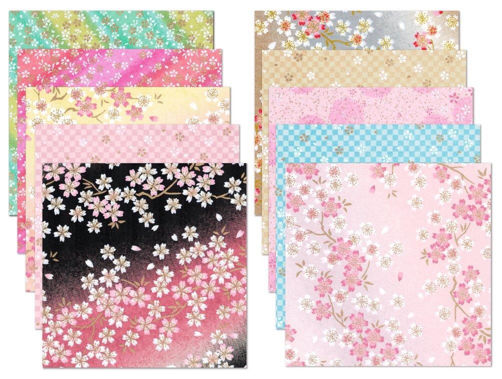 Kawasumi Washi Special Cherry Blossom Chiyogami Yuzen Washi 10 Patterns Hand-Dyed Paper, 15cm,