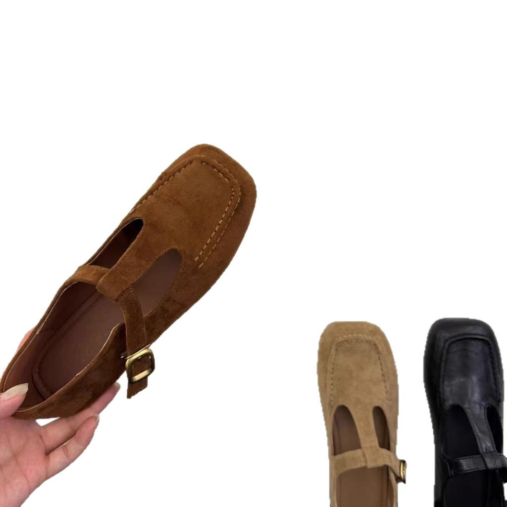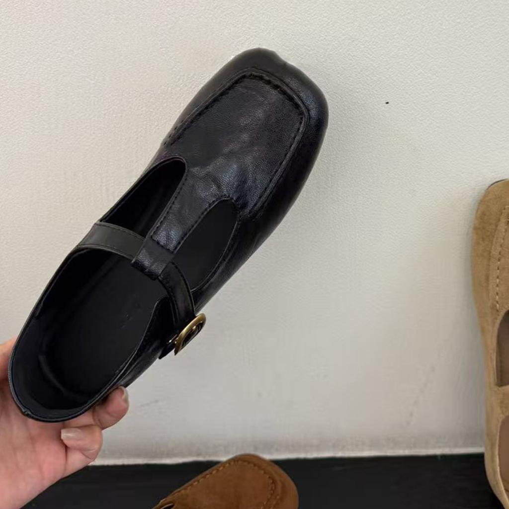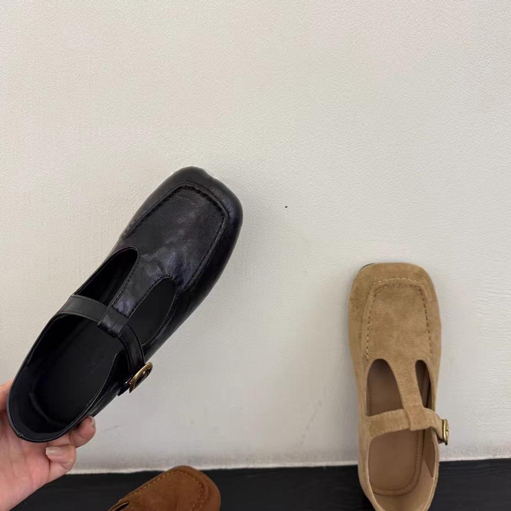 Корейская версия осенних туфель Мэри Джейн с неглубоким вырезом 2025 новая квадратная носочная часть, носок манго, одинарные туфли, повседневная обувь на мягкой подошве, туфли бабушкины