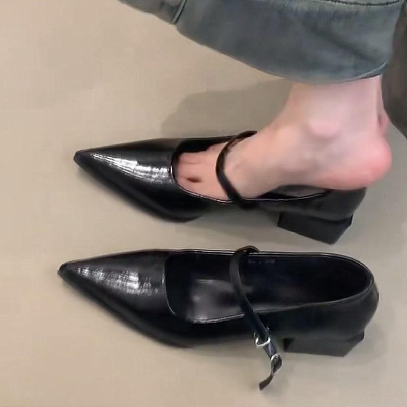 Версия из овчины~ туфли Мэри Джейн с острым носком, детские, в стиле ретро, с черным толстым каблуком, французский темперамент, одинарные туфли, не утомляют