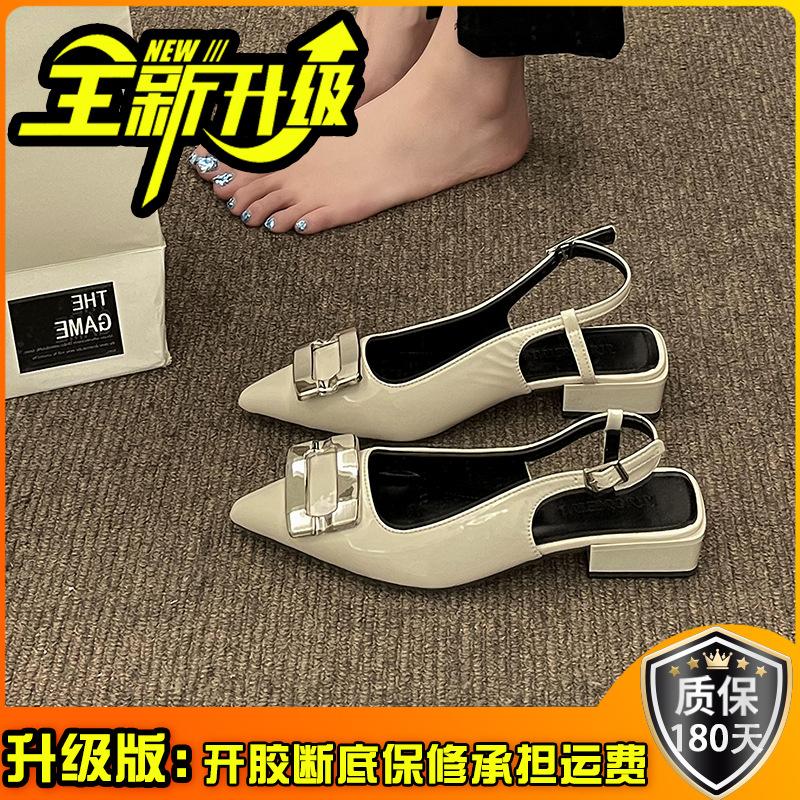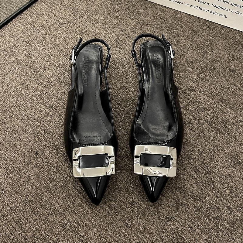 Металлические сандалии с квадратной пряжкой, женские, лето 2025, универсальные, на толстом каблуке, с острым носком, с лакированной кожей, туфли-лодочки, сандалии на толстом каблуке