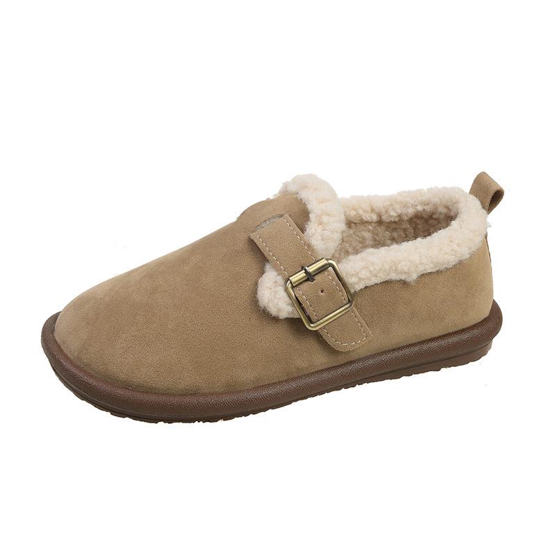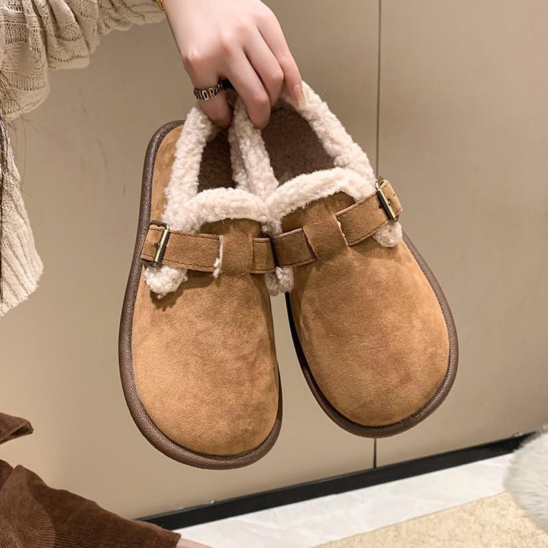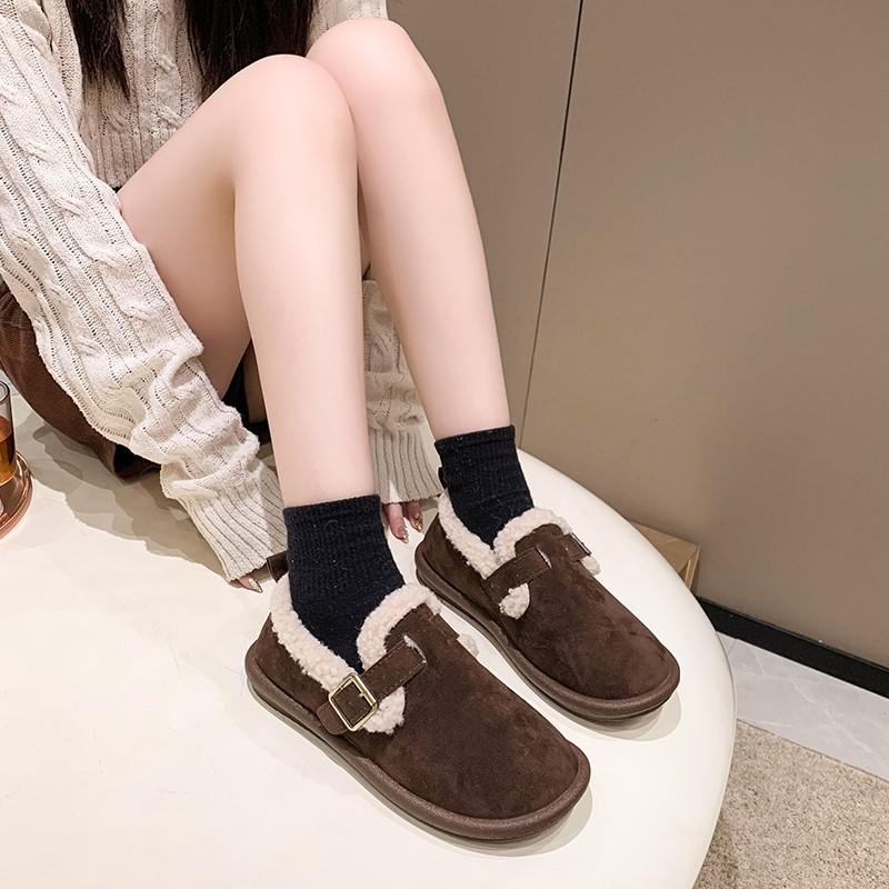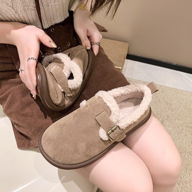 Корейская версия 2025 года, зимние бархатные зимние сапоги, ленивые туфли с круглой головкой и толстой подошвой, хлопковые туфли с пряжкой в одно слово, женская обувь, обувь Doudou