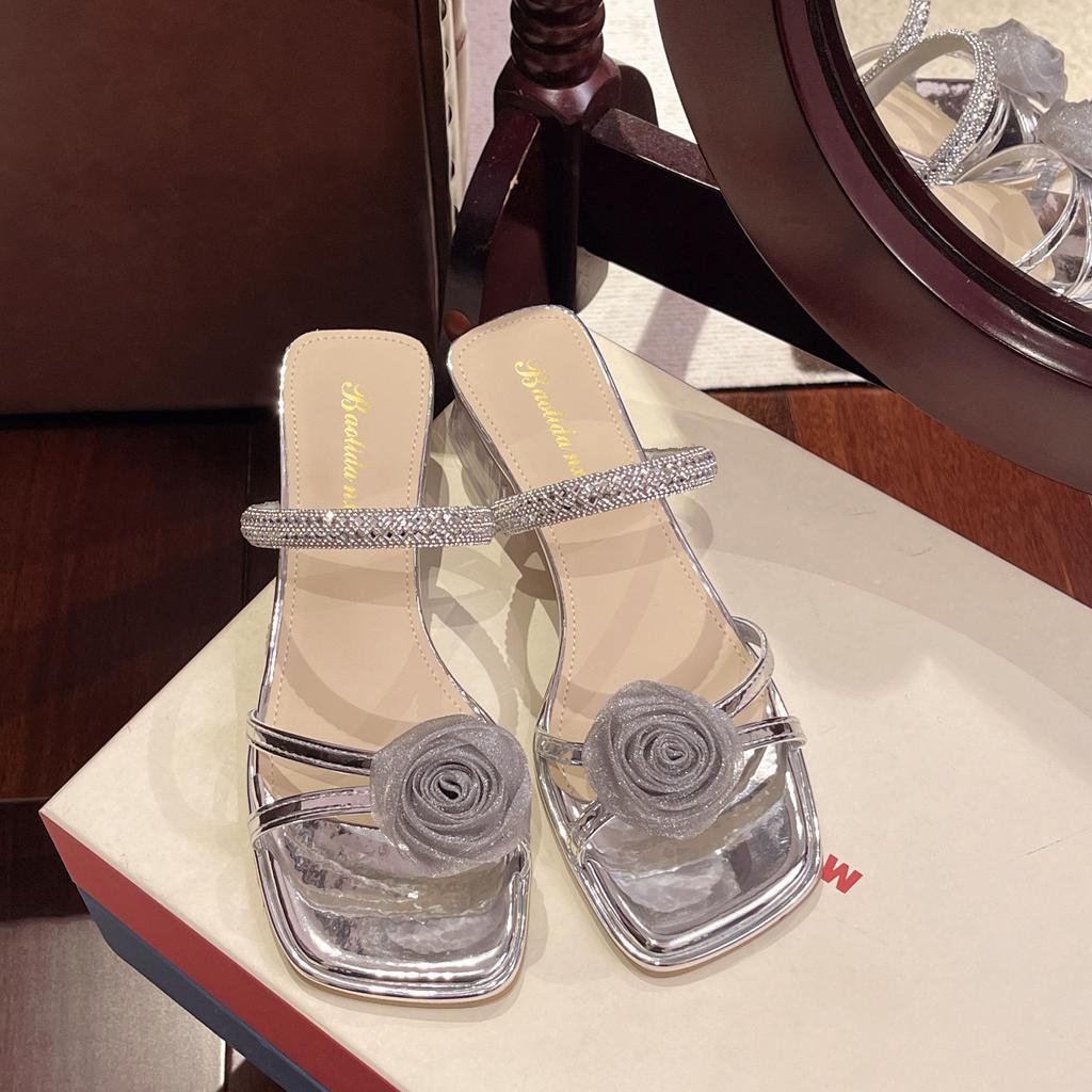 Фея ветер цветок крышка носок прохладные тапочки женщины лето носить 2025 новый темперамент кристалл толстый каблук носок сандалии