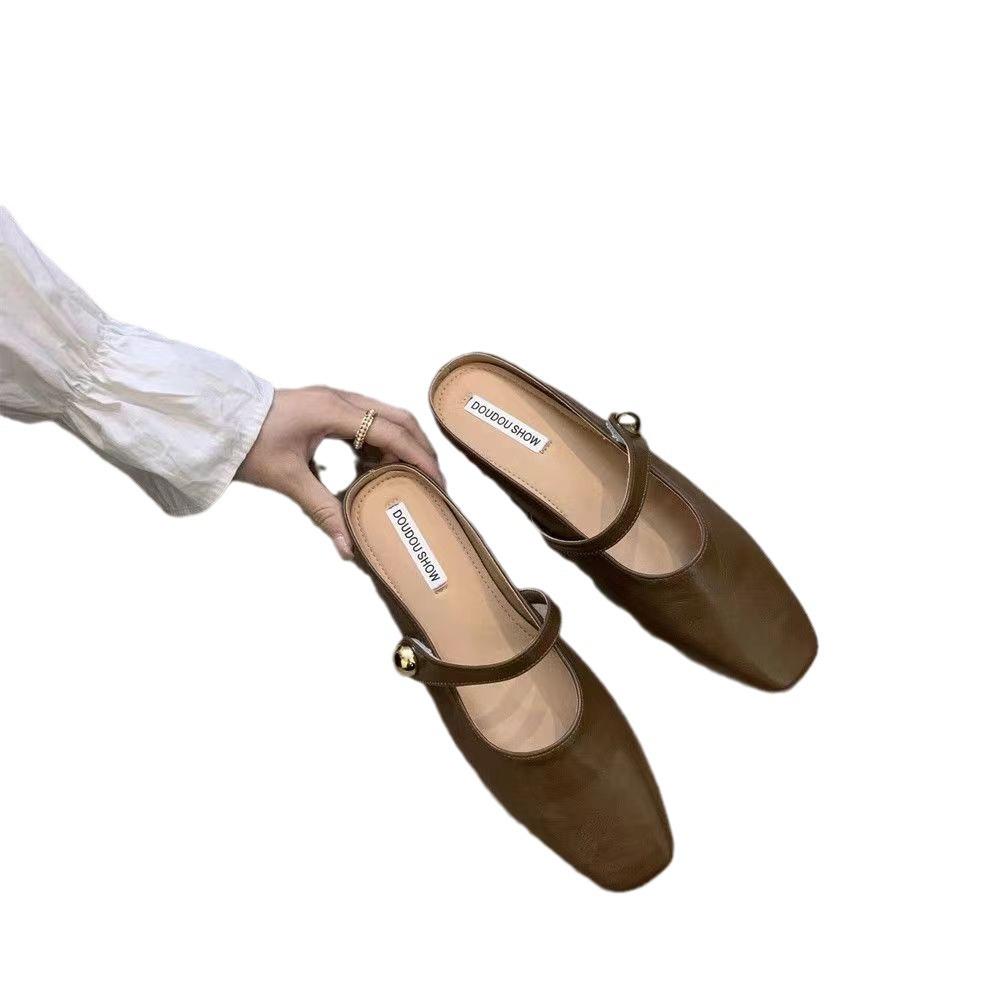 Французские тапочки-полушапки высокого класса женские летние 2025 года, новая верхняя одежда на плоской подошве в стиле ретро, нишевая обувь Muller