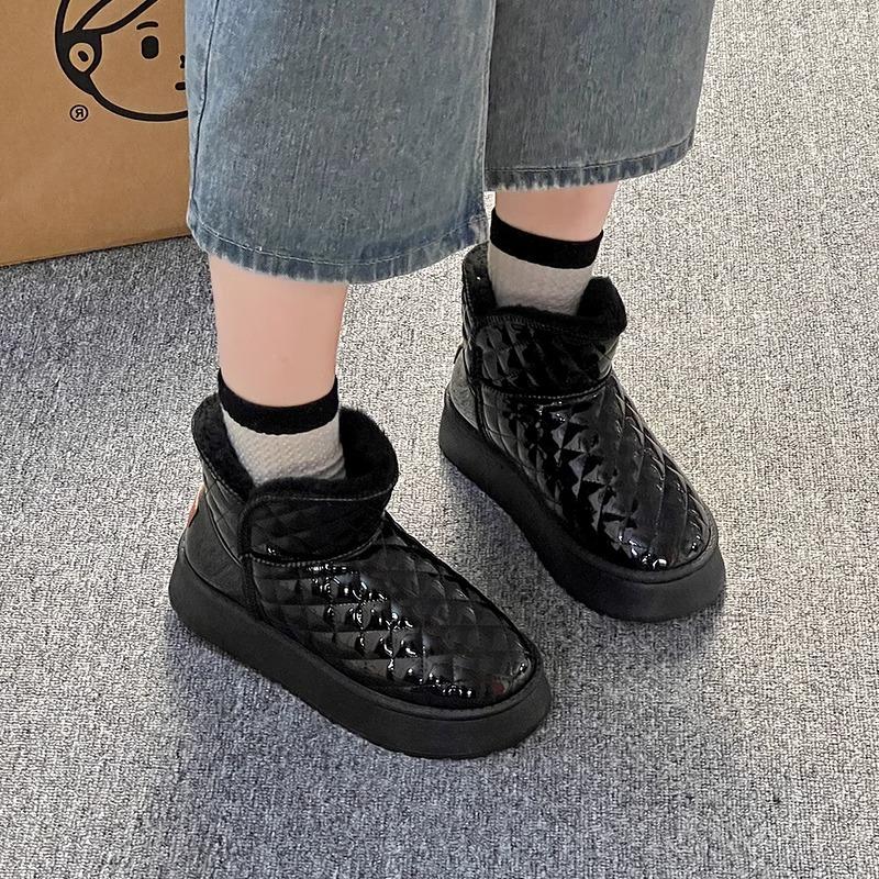 Зимние женские ботинки на толстой подошве 2025 новые зимние короткие ботинки короткие ботинки с напуском и утолщенные водонепроницаемые хлопковые туфли увеличивающие рост хлопковые ботинки