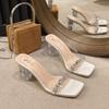 Прозрачные сандалии на толстом каблуке со стразами для женской уличной обуви 2025 новые квадратные хрустальные и универсальные крутые шлепанцы на высоком каблуке