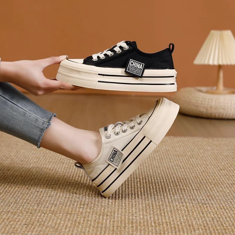 Платформенные парусиновые туфли женские 2025 весна и лето новинка увеличение роста студенческие универсальные взрыв повседневные маленькие белые туфли спортивная обувь для скейтборда