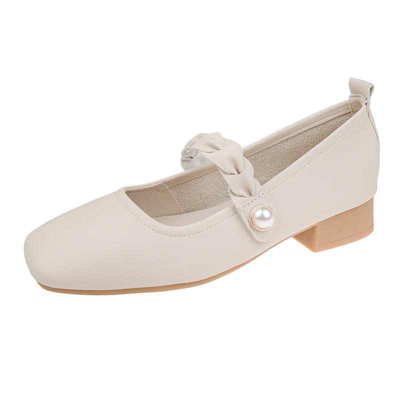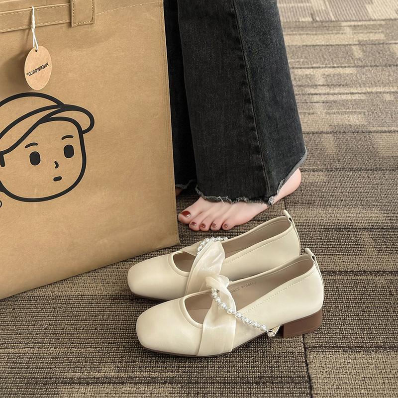 Женские туфли Мэри Джейн 2025 новые весенне-летние одинарные туфли женские на плоской подошве с мелким вырезом квадратным носком мягкой подошвой средним каблуком толстым каблуком маленьки