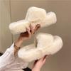 Увеличивающие рост толстоподошвенные пушистые тапочки женские осенне-зимние для улицы пушистая обувь на одной перемычке ins домашние домашние плюшевые тапочки весна и лето