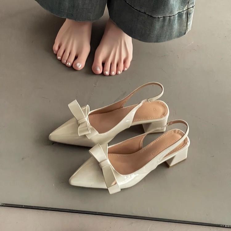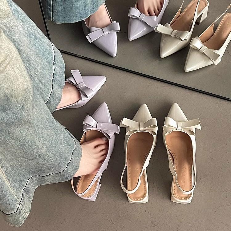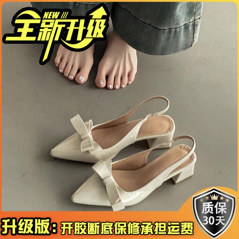 Босоножки с бантом и сумкой на голове женские летние 2025 новые французские феи в стиле юбки на высоком каблуке пустые одинарные туфли