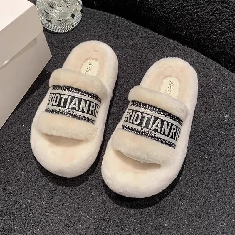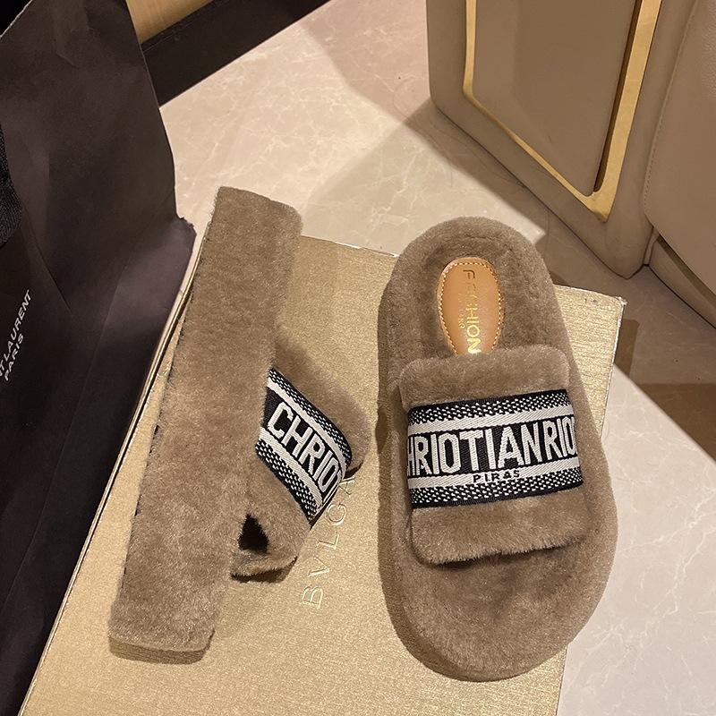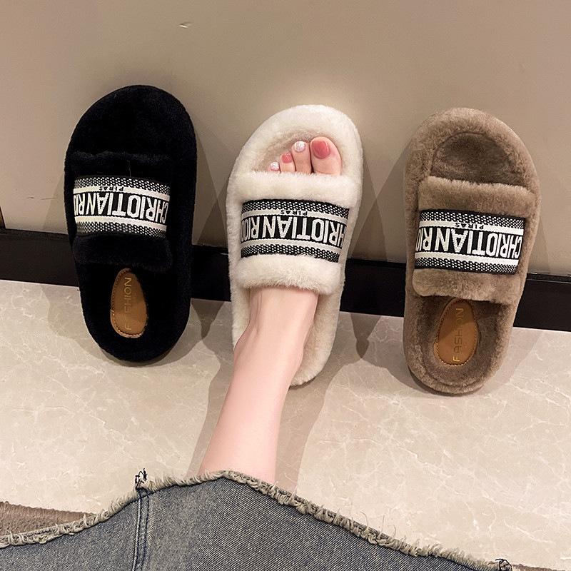 Пушистые тапочки на толстой подошве, женские, 2025, новая осенне-зимняя модная плюшевая обувь для выхода в свет, интернет-знаменитость, зарубежный стиль, хлопковые мопы
