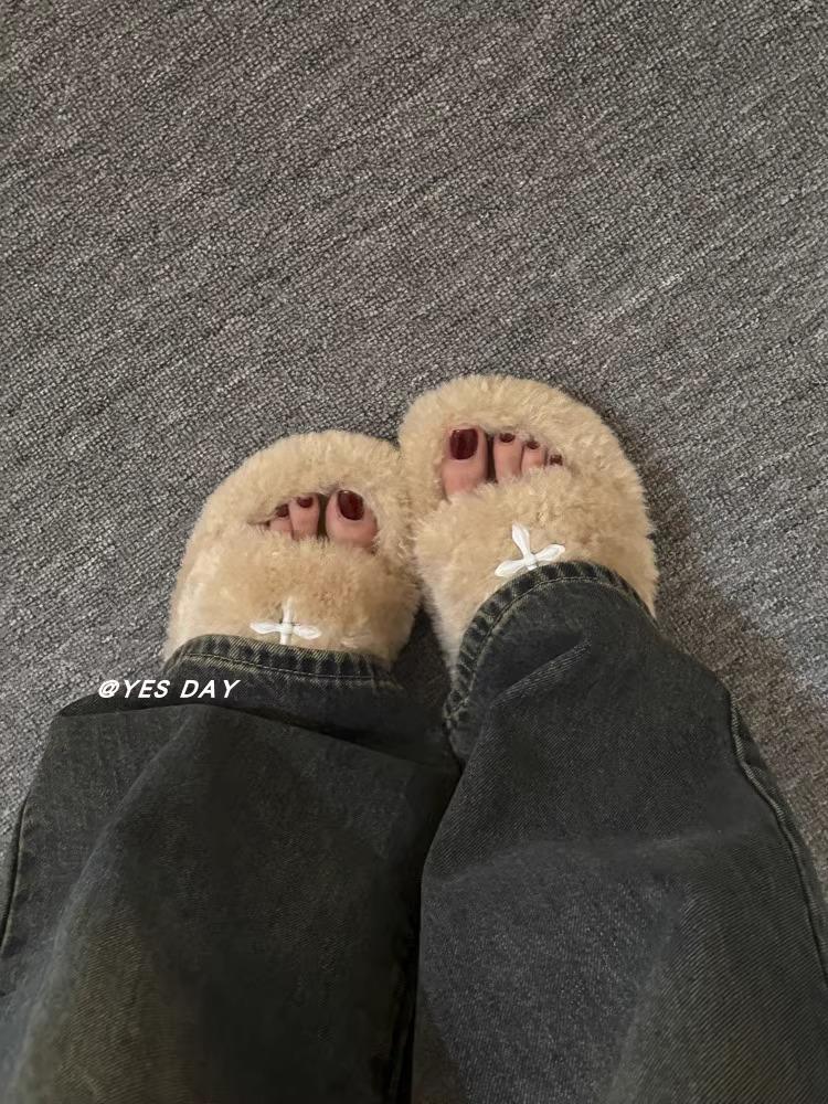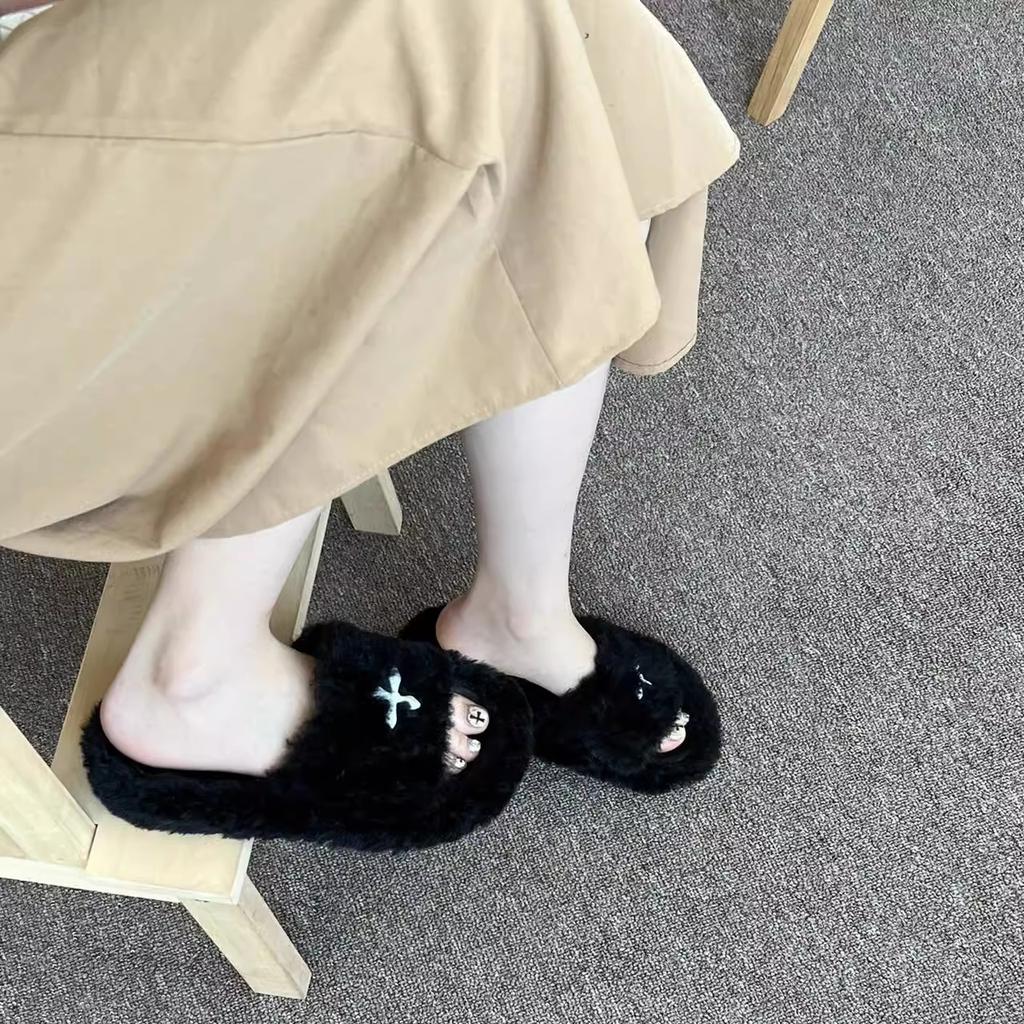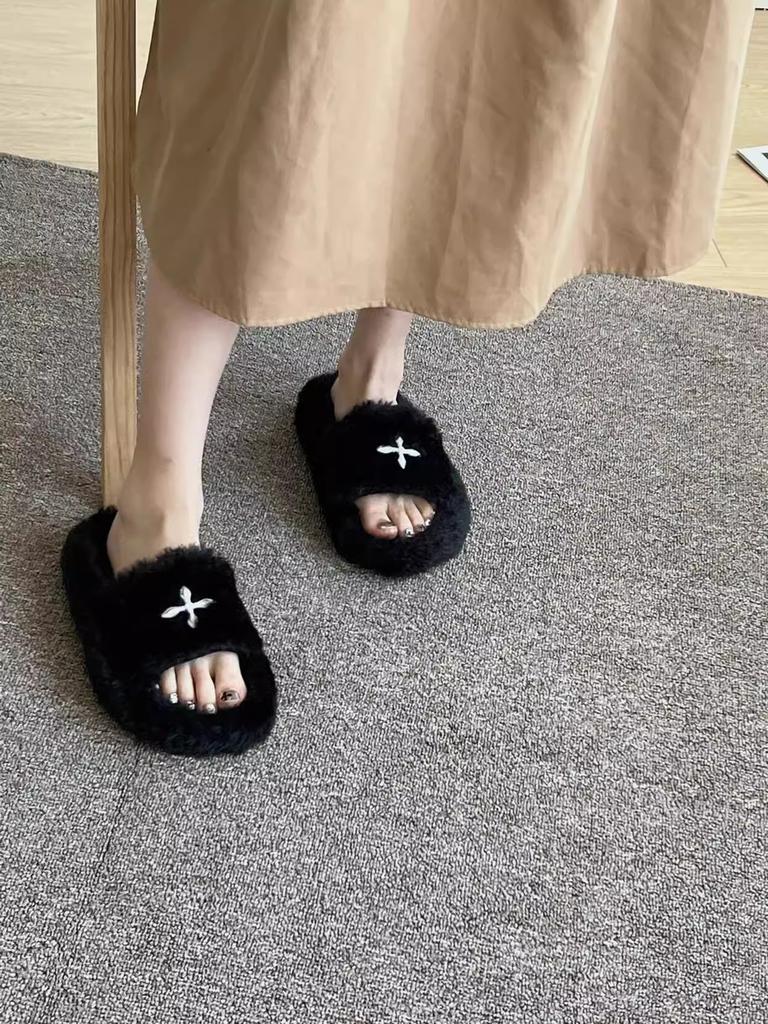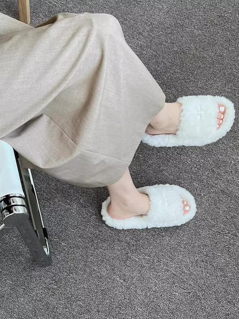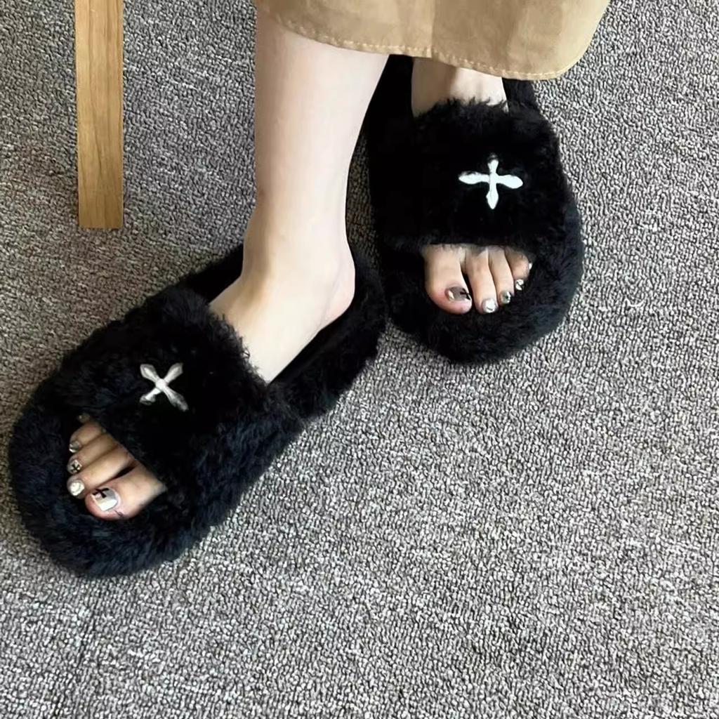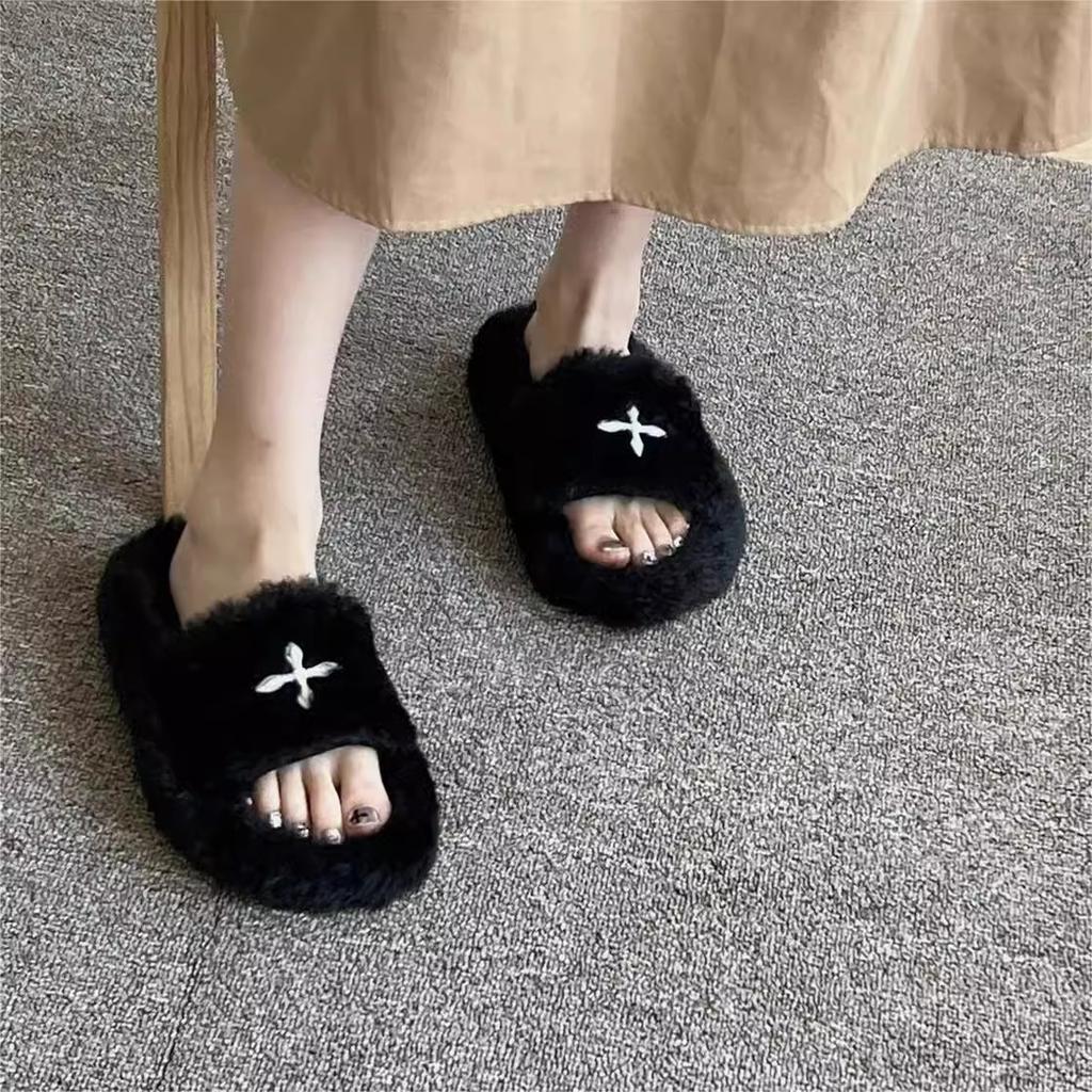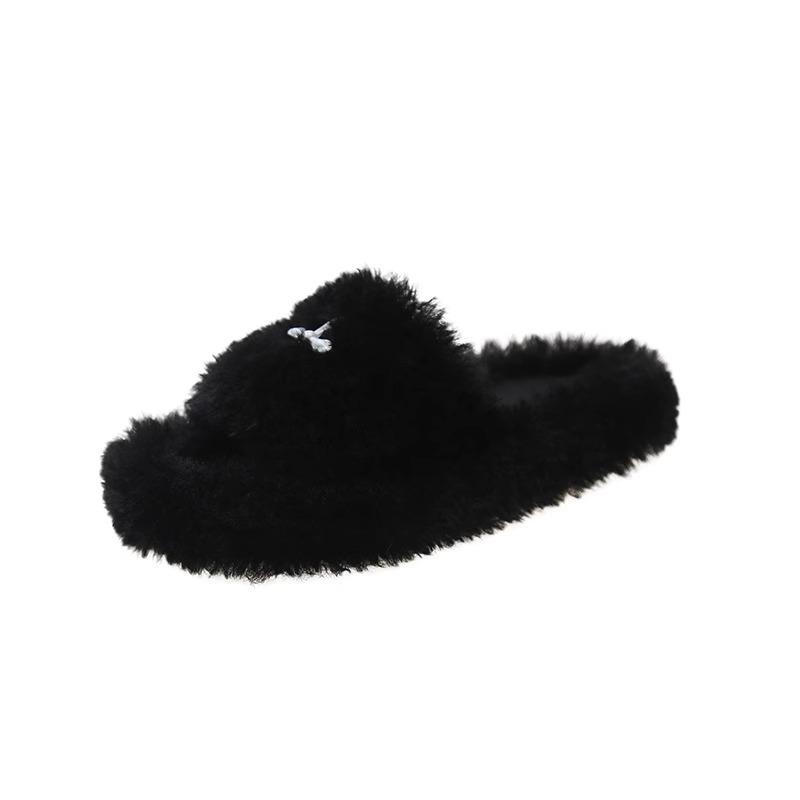 Повседневные пушистые тапочки на толстой подошве для женской осенне-зимней носки 2025 новый трендовый повседневный универсальный моп-перекресток на плоской подошве