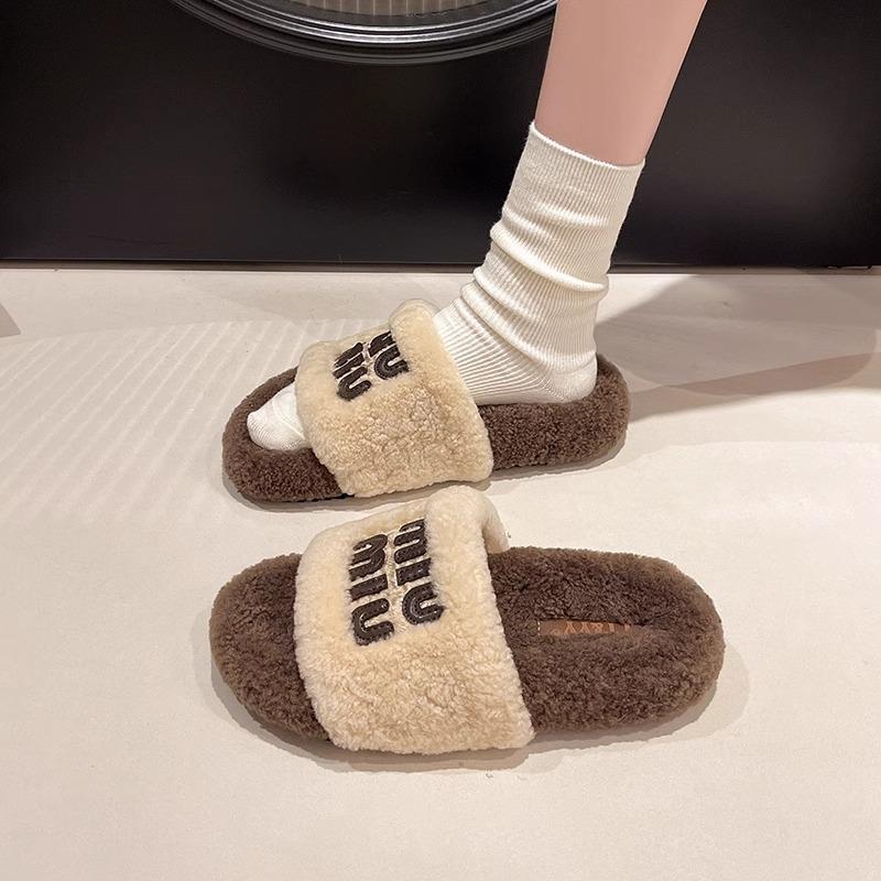 Премиальный взрыв чувств толстоподошвенные пушистые тапочки женские 2025 новые универсальные маленький ароматный стиль буква однословные шлепанцы иностранный стиль удобные