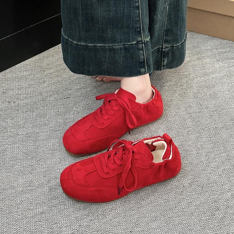 Французские ретро-бордовые туфли женские весна 2025 новые универсальные немецкие кроссовки повседневные бордовые туфли мода Форрест Гамп прилив