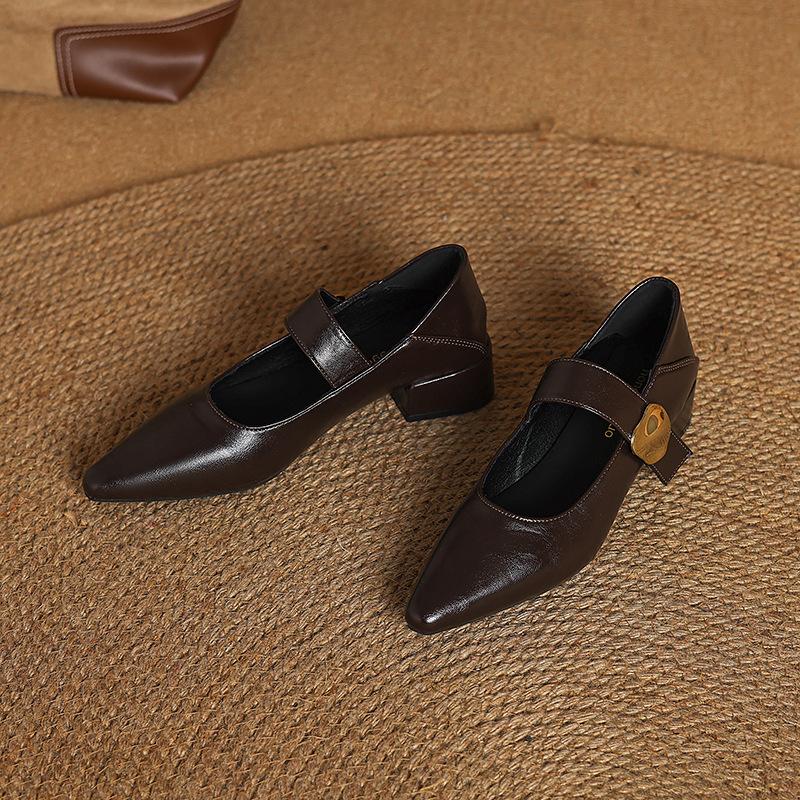 2025 весна новая остроносые толстый каблук туфли на высоком каблуке с мелким вырезом и пряжкой одинарные туфли женская обувь модный тренд европейский и американский стиль