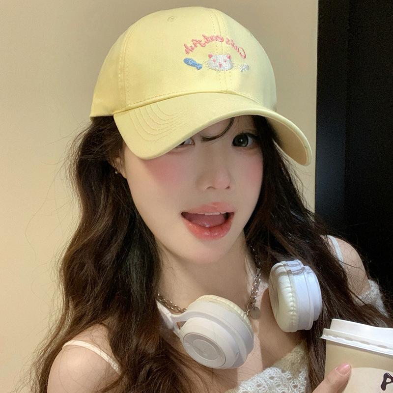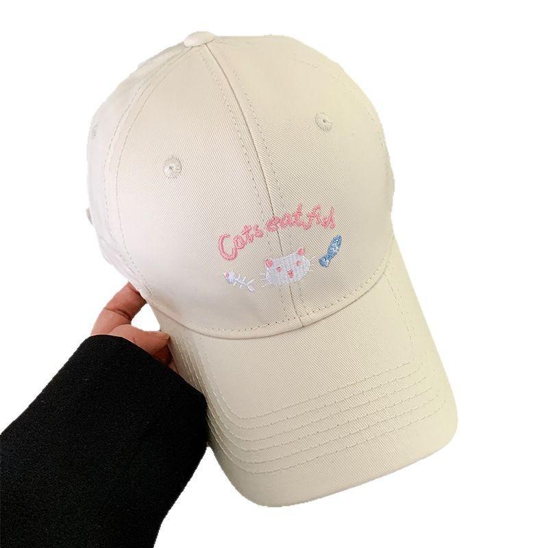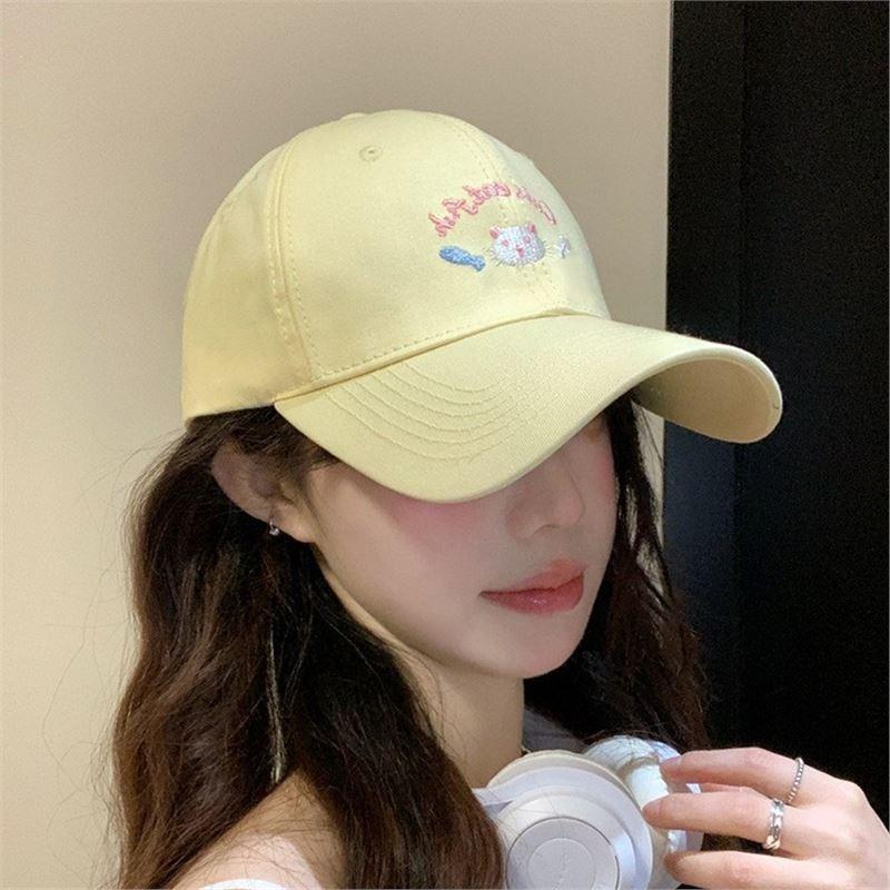Милая кепка с вышивкой котенка, женская, весенне-летняя, большой обхват головы, широкие поля, подчеркивающая лицо, маленькая кепка с козырьком, универсальная шляпа
