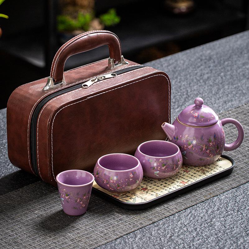 Фиолетовый фарфоровый чайный набор печи Жу 2025 новый для заваривания чая специальный бытовой маленький чайный столик полный набор легкая роскошь высокий класс