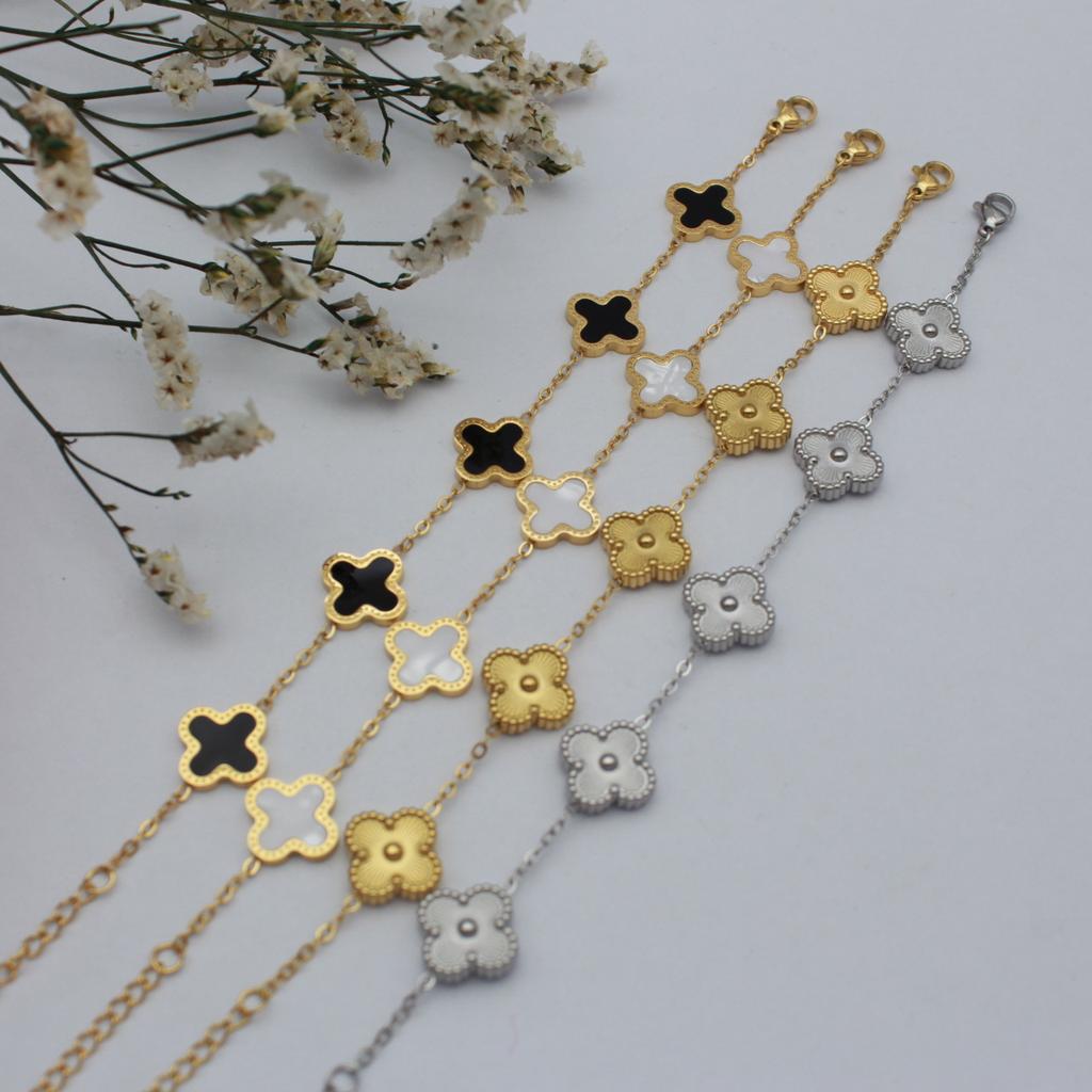 Высококачественный браслет Четырехлистный клевер - пять цветков , лазерная гравировка, Счастливый клевер , двусторонний, женский браслет — купить товар онлайн с бесплатной доставкой по всему миру!