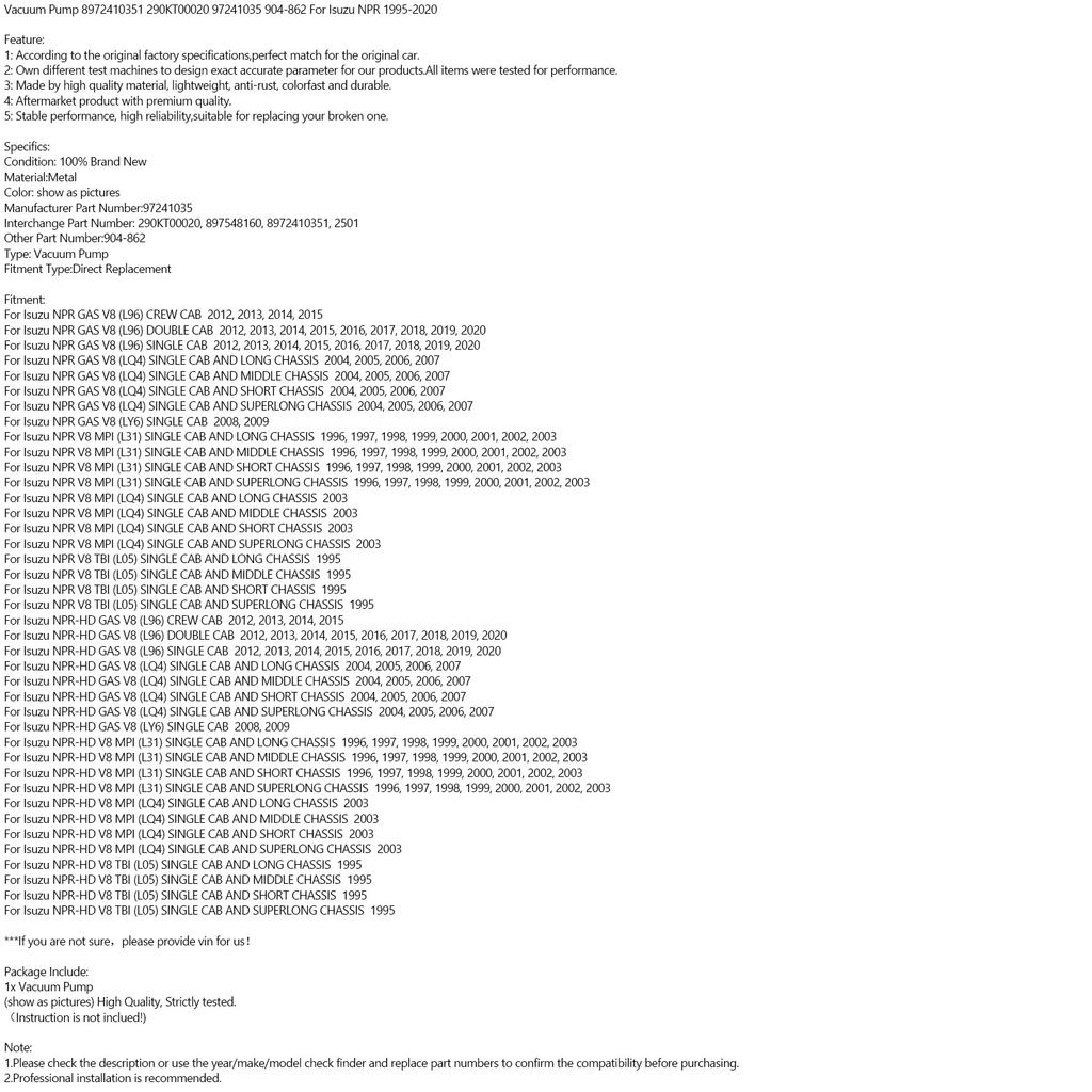 For Isuzu NPR V8 MPI (L31) SINGLE CAB AND SHORT CHASSIS 1996, 1997, 1998, 1999, 2000, 2001, 2002, 2003