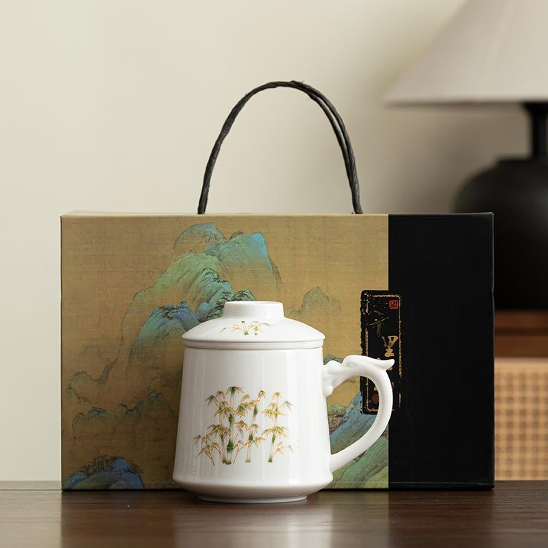 Китайская кружка из белого фарфора Дэхуа из золотого шелка, керамическая офисная чашка большой вместимости с крышкой, чашка для разделения чая