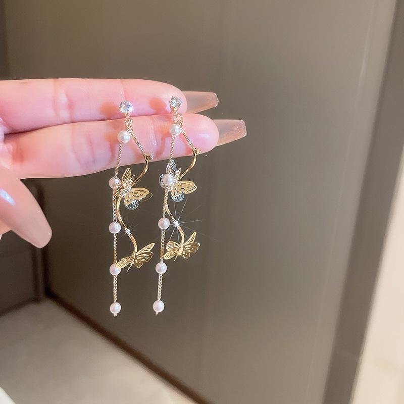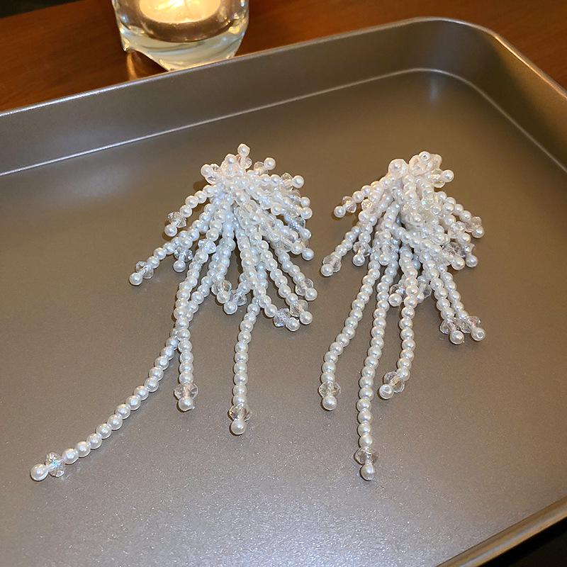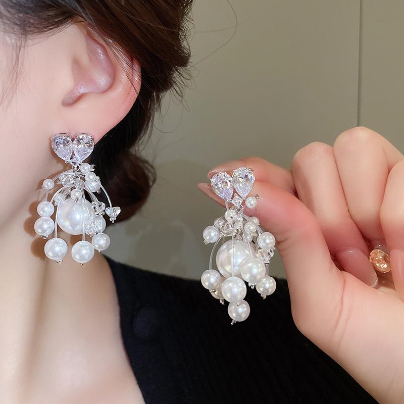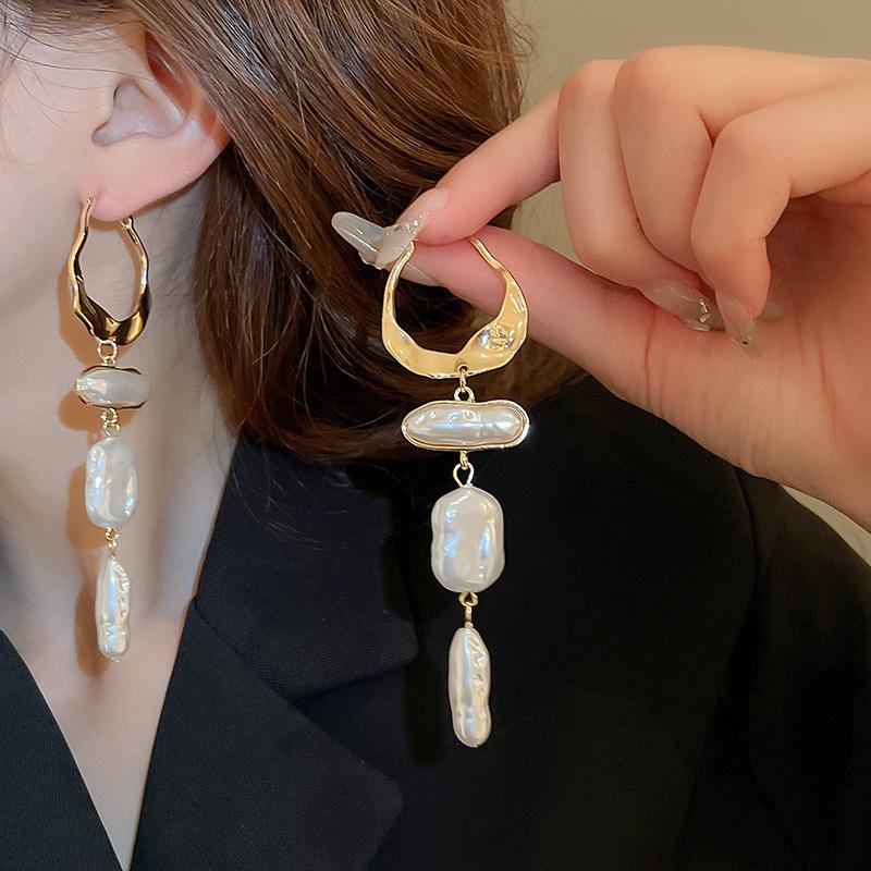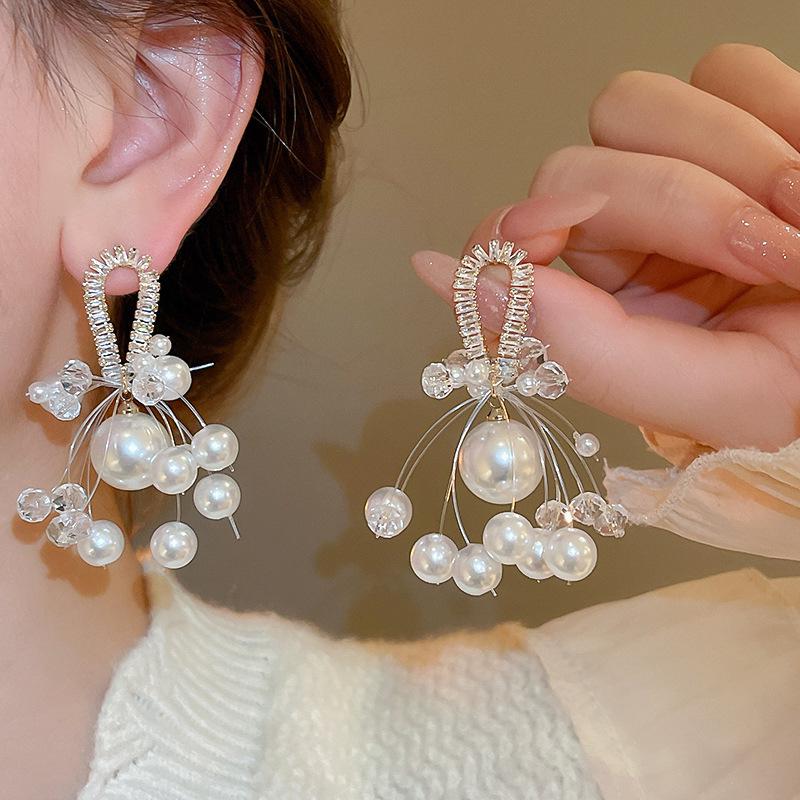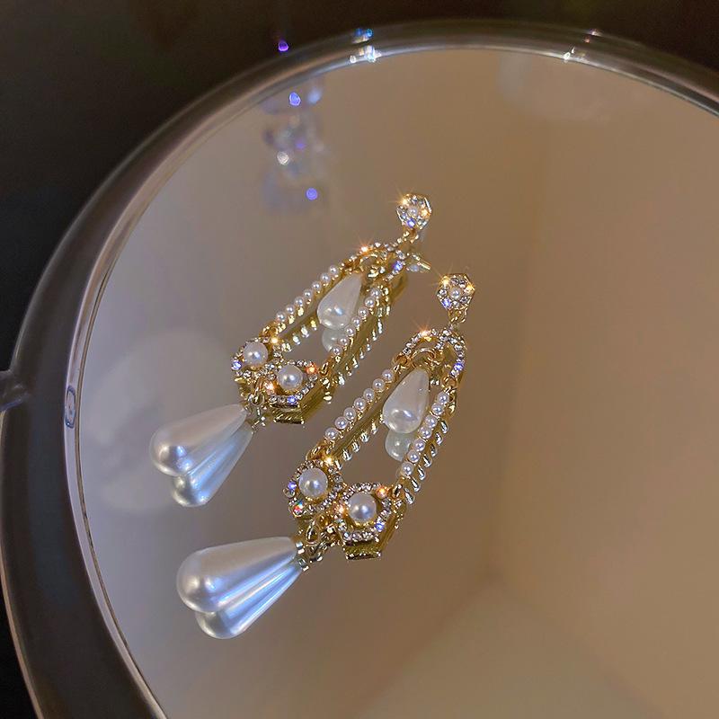 Геометрические серьги с серебряными иглами, стразами и жемчугом - Элегантный французский ретро-стиль