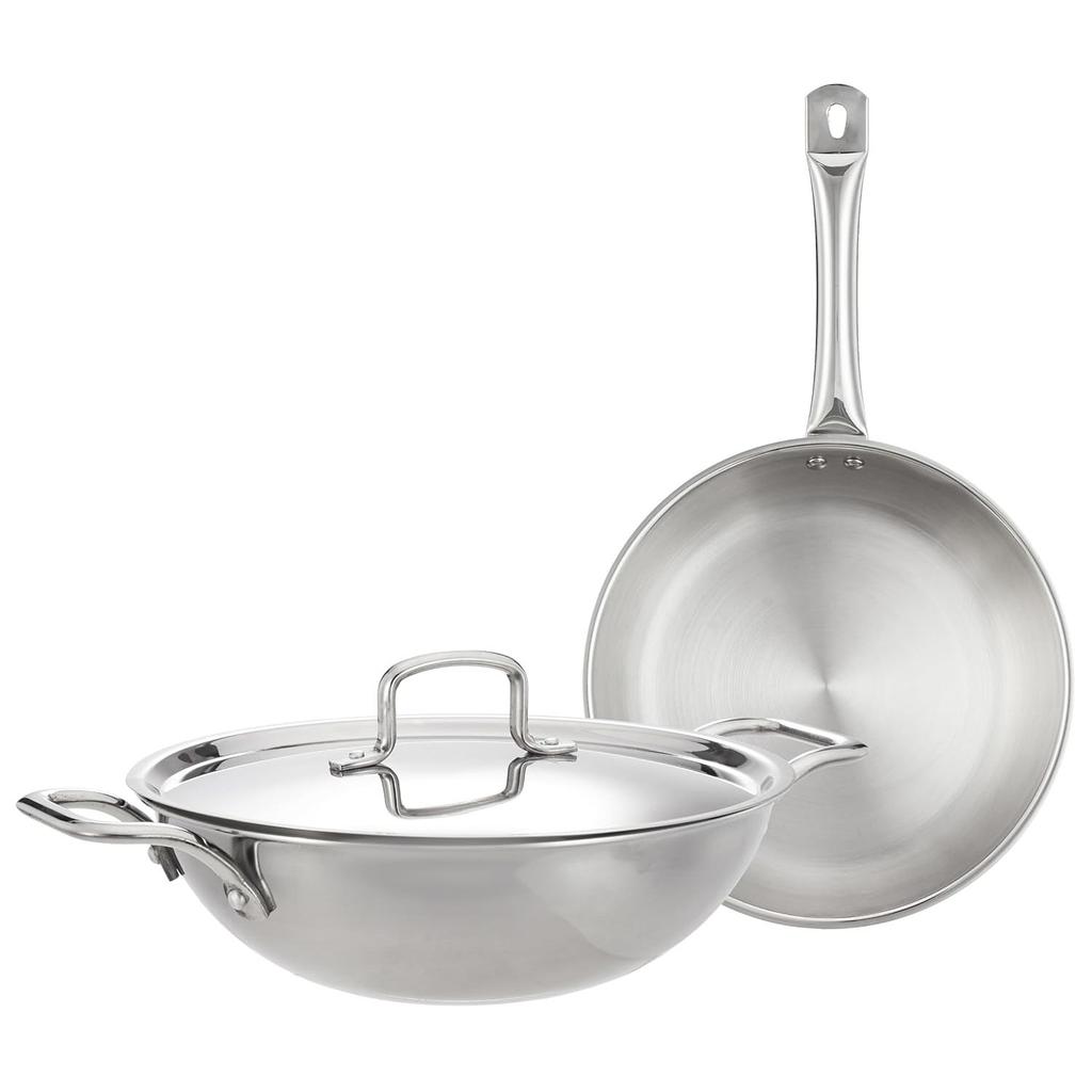 Набор посуды из трехслойной нержавеющей стали, 2 предмета (Кадхай/Вок с крышкой-24 см, Сковорода-24 см) Подходит для индукционных и газовых плит
