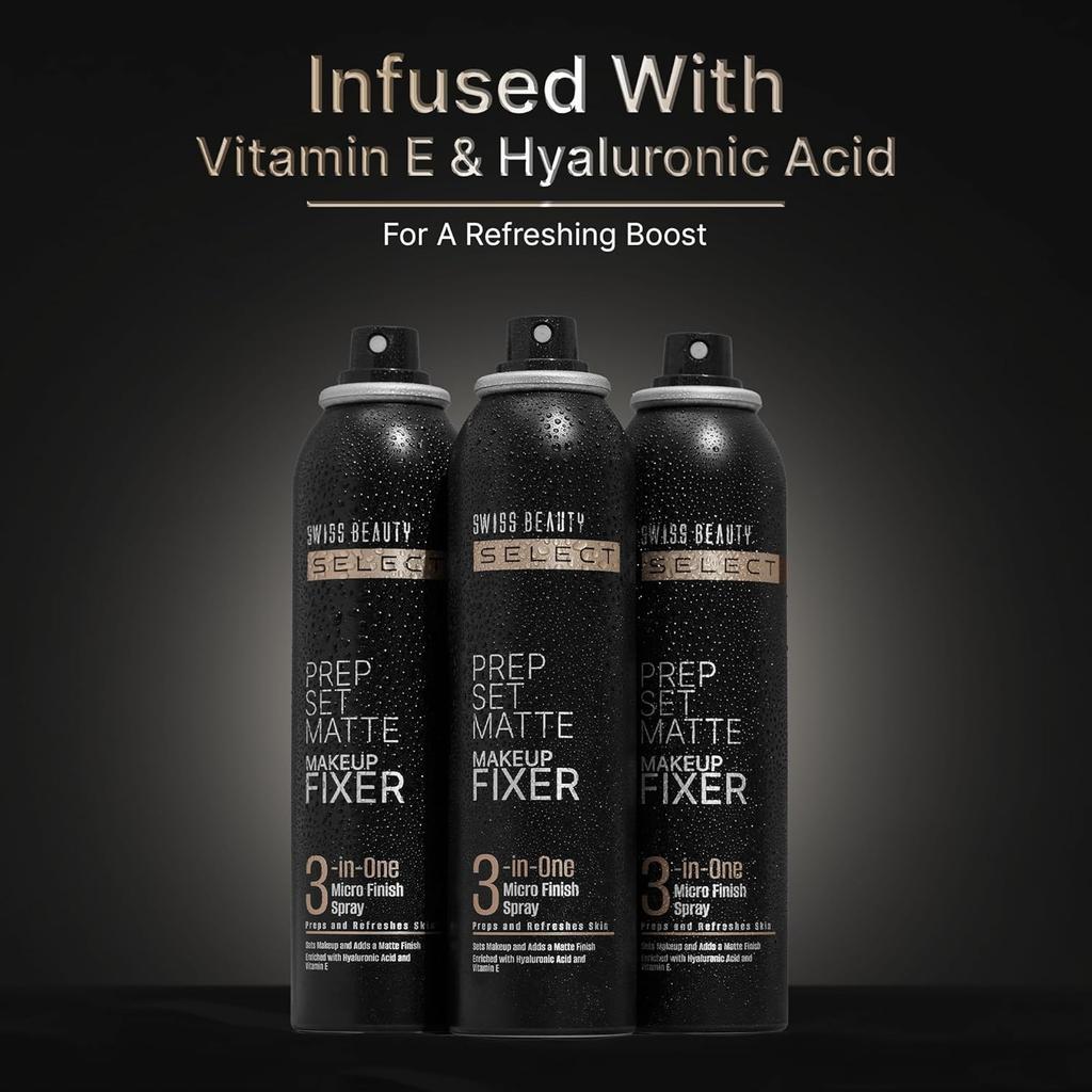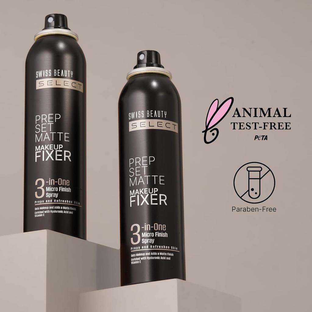 Спрей-микрофиниш 3-в-1 - Фиксатор макияжа The Prep Set Matte от Swiss Beauty Select универсален, так как выполняет три задачи. Он подготавливает вашу кожу, фиксирует макияж и придает матовый финиш, похожий на кожу.