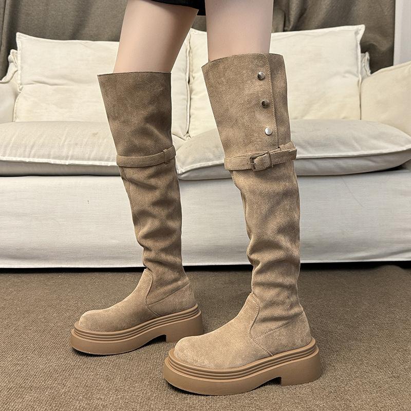 Модный темперамент Маленький человек ботфорты выше колена на толстой подошве Женские сапоги 2025 новые осенние тонкие высокие сапоги-рыцари