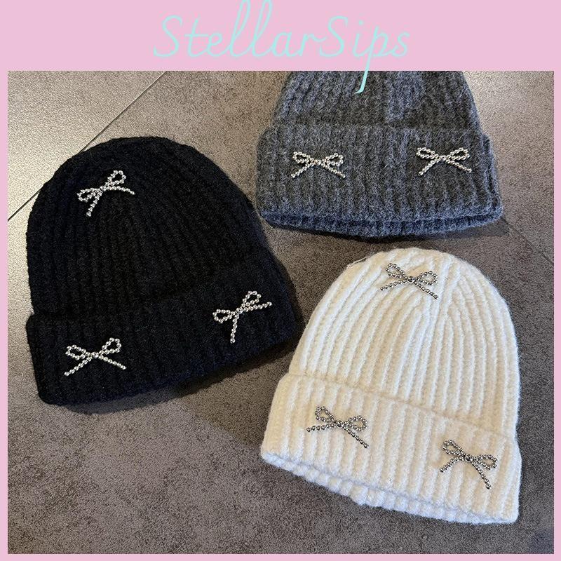 Цвет Мода Однотонный Декор Бантом Женская Повседневная Вязаная Шапка Осень И Зима