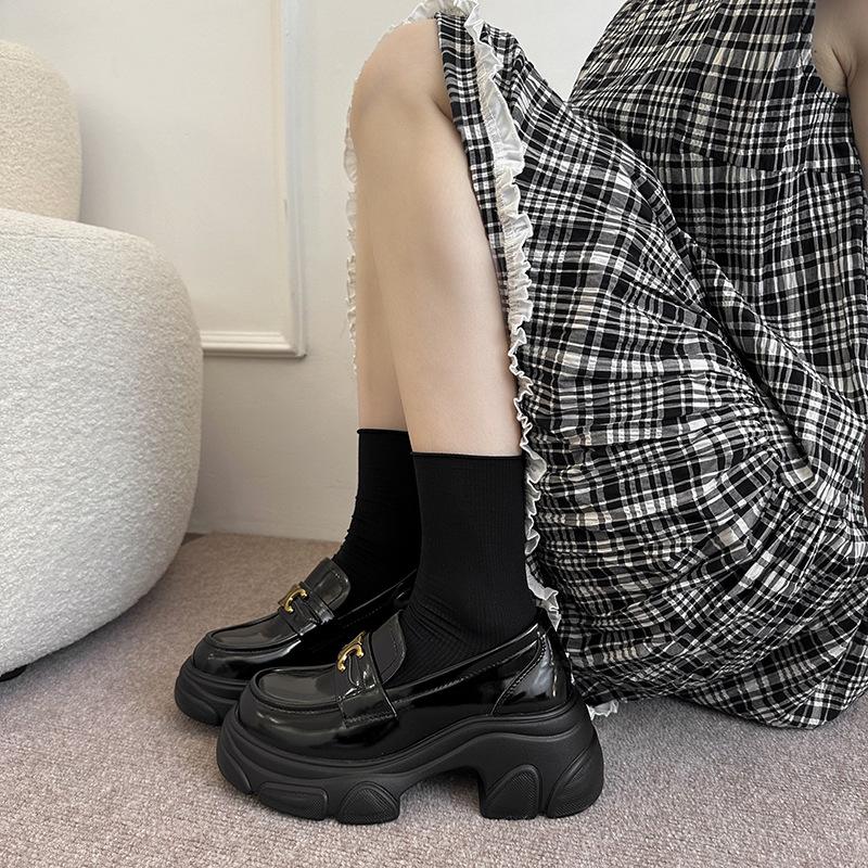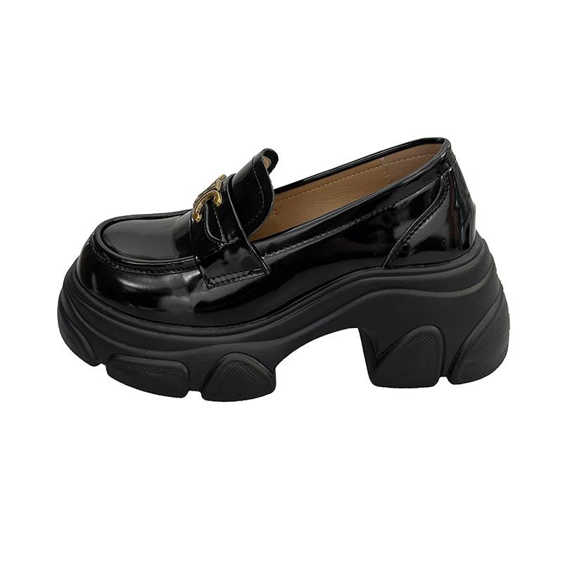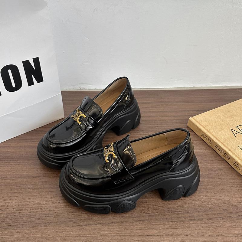 Маленькие кожаные туфли женские в британском стиле лето 2025 новые лоферы на платформе на толстом каблуке увеличивающие рост одинарные туфли