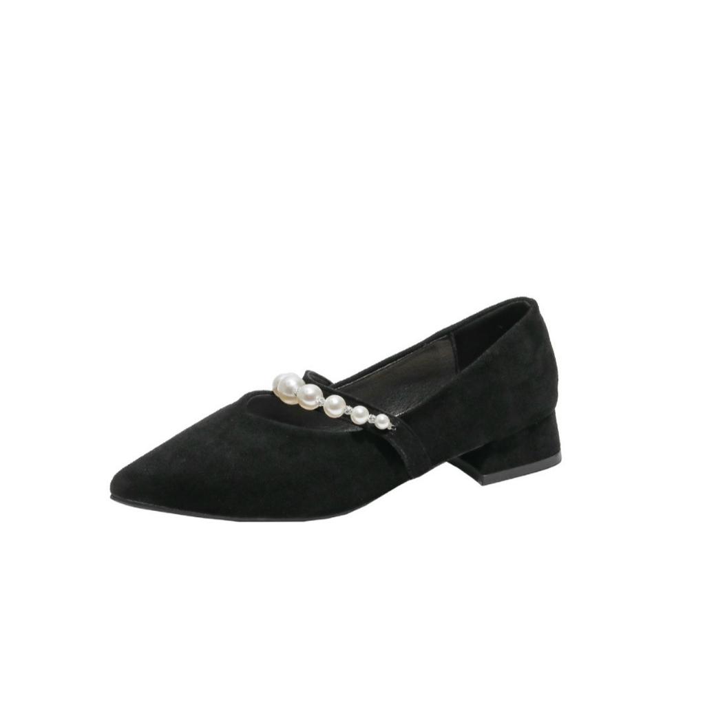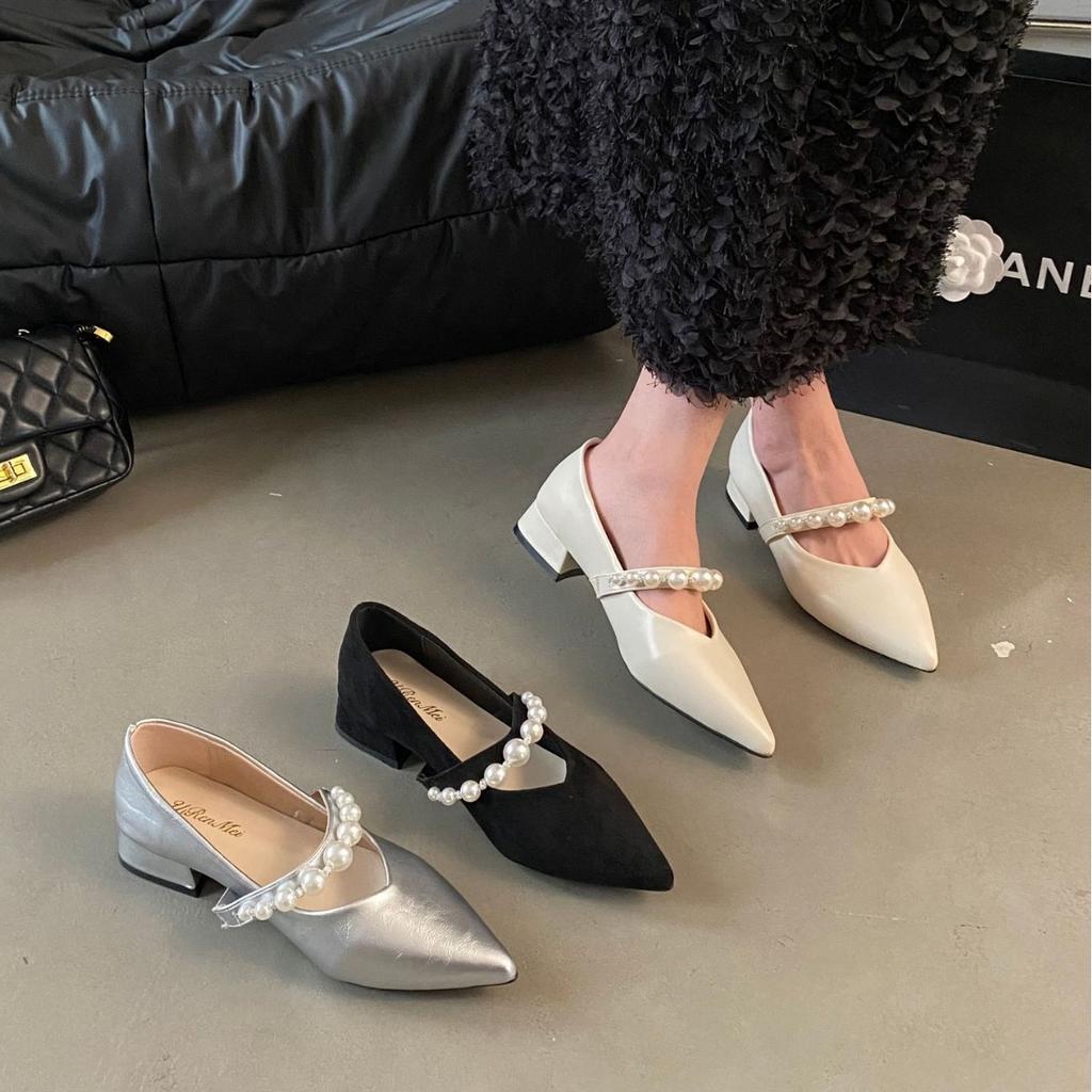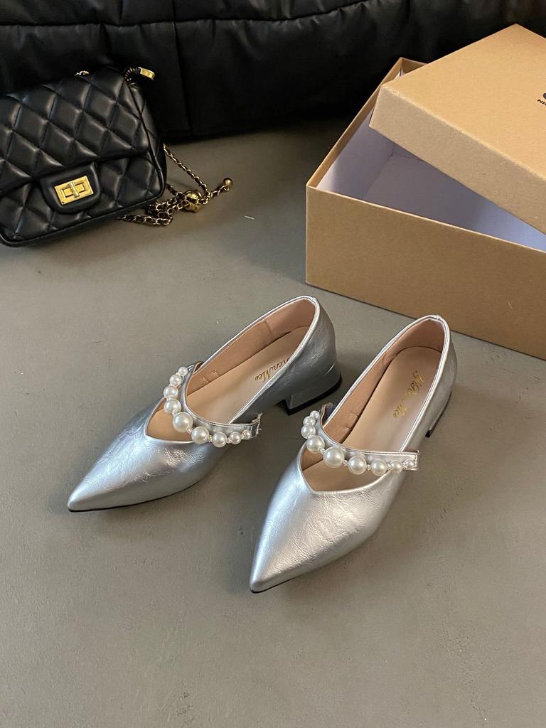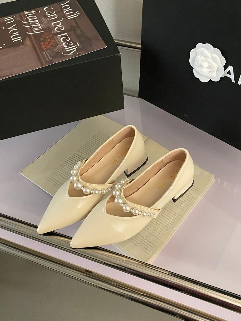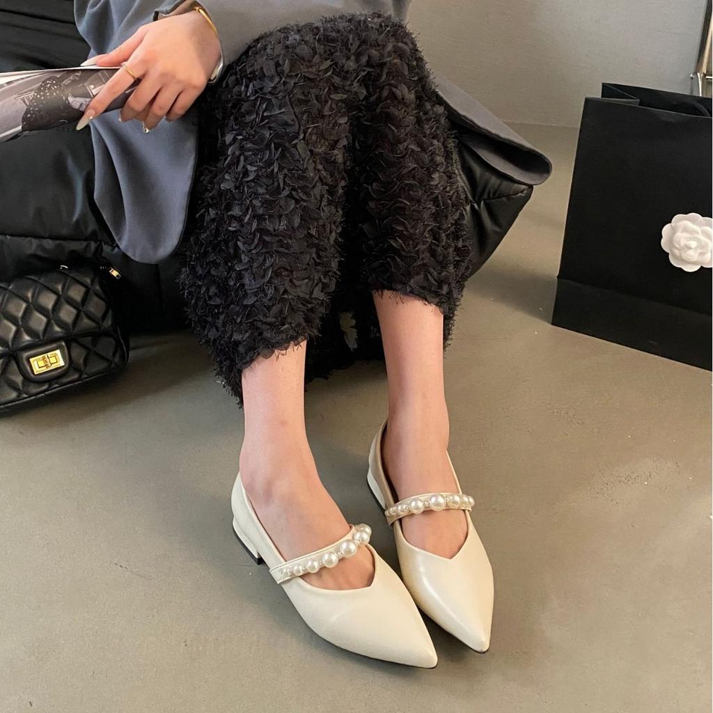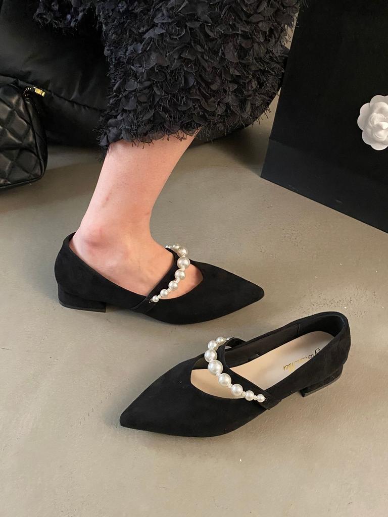 Французские туфли Мэри Джейн женские туфли весна и лето 2025 новые жемчужное слово с острым носком с юбкой с мелким вырезом одинарные туфли