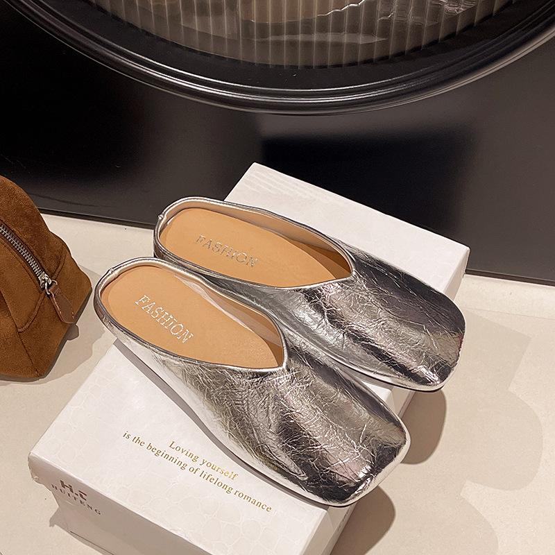 2025 новая корейская версия нежных фееричных мягких туфель Мюли на плоской подошве, повседневные туфли-однопедальки с закрытым мыском, полушлепанцы для женщин для ношения на улице