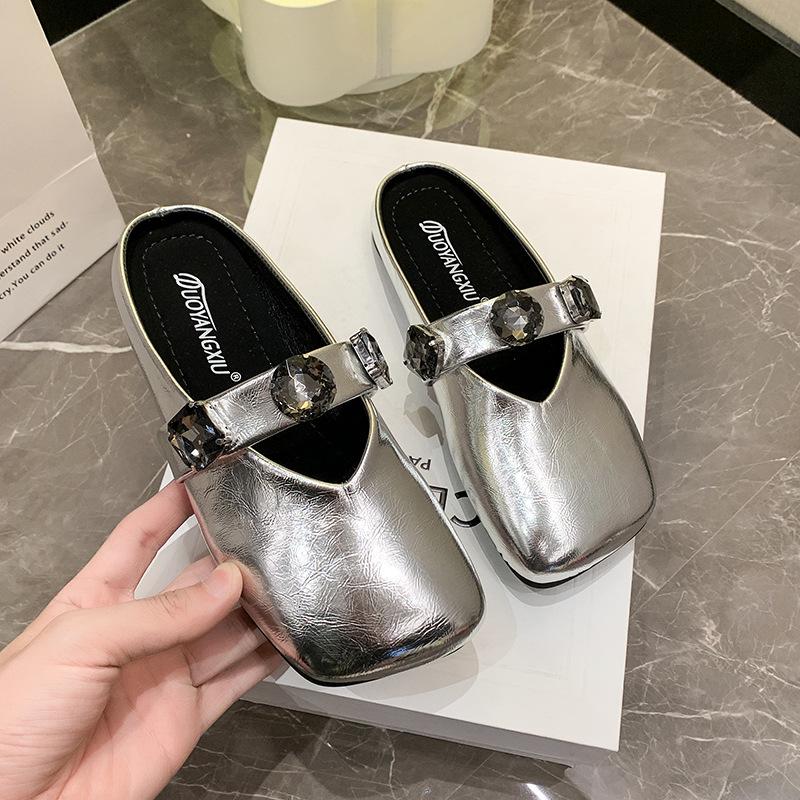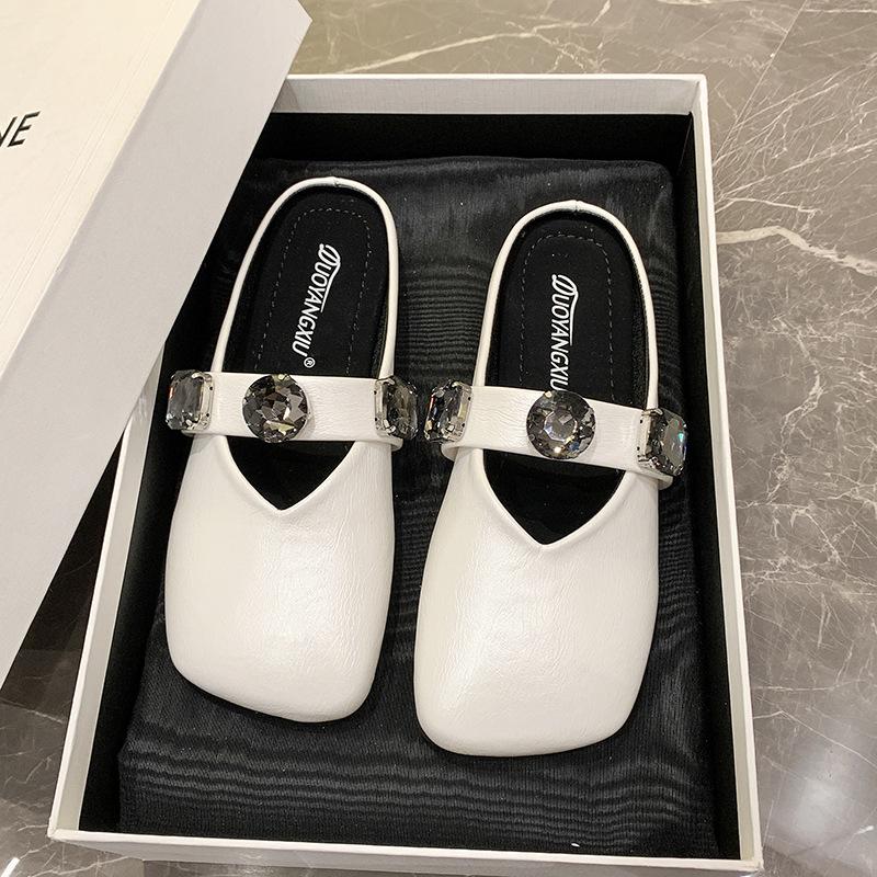 Интернет-знаменитость супер огонь фея ветер квадратный носок баотоу стразы универсальные тапочки женская обувь летняя носка 2025 новые плоские сандалии
