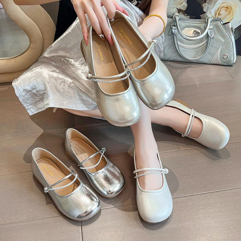 Французские серебристые туфли Мэри Джейн из маленькой кожи женские 2025 новая летняя красивая юбка плоская подошва мелкий вырез вечерние одинарные туфли