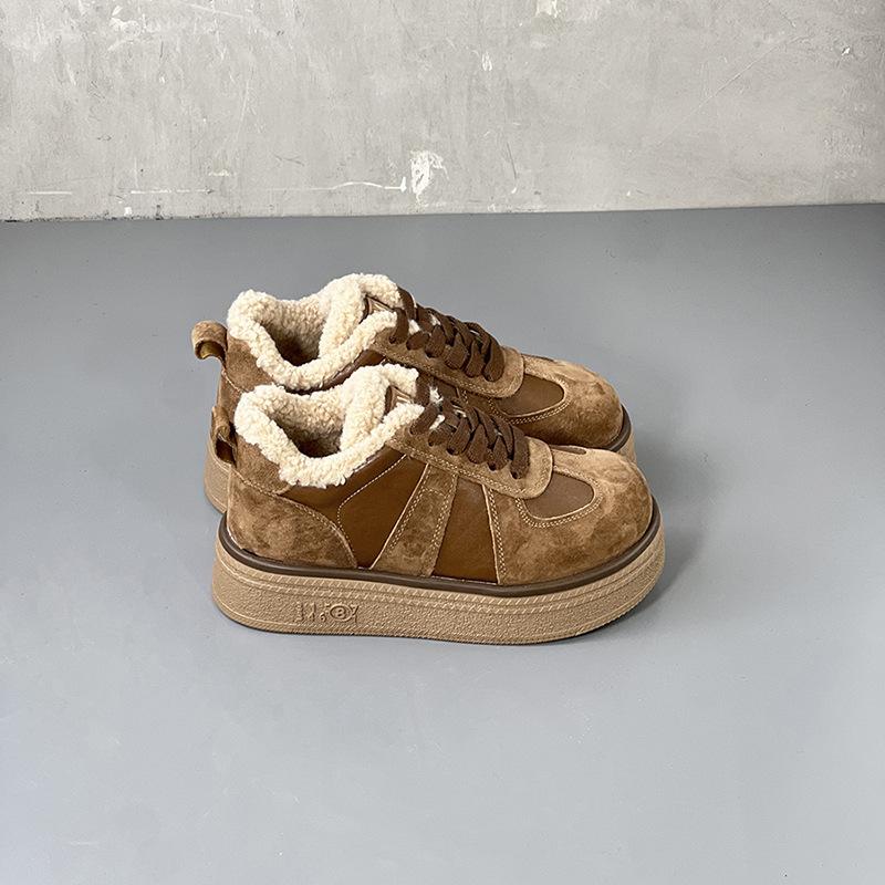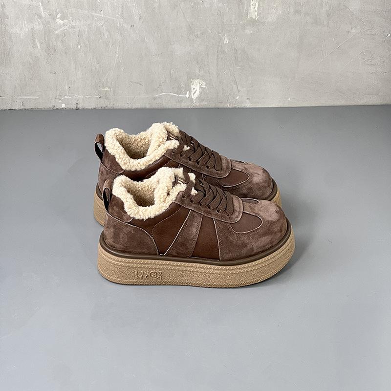 Толстоподошвенные флисовые кеды 2025 осень-зима женская обувь новая ретро спортивная и повседневная обувь флисовая обувь женские тренировочные туфли