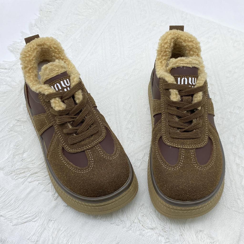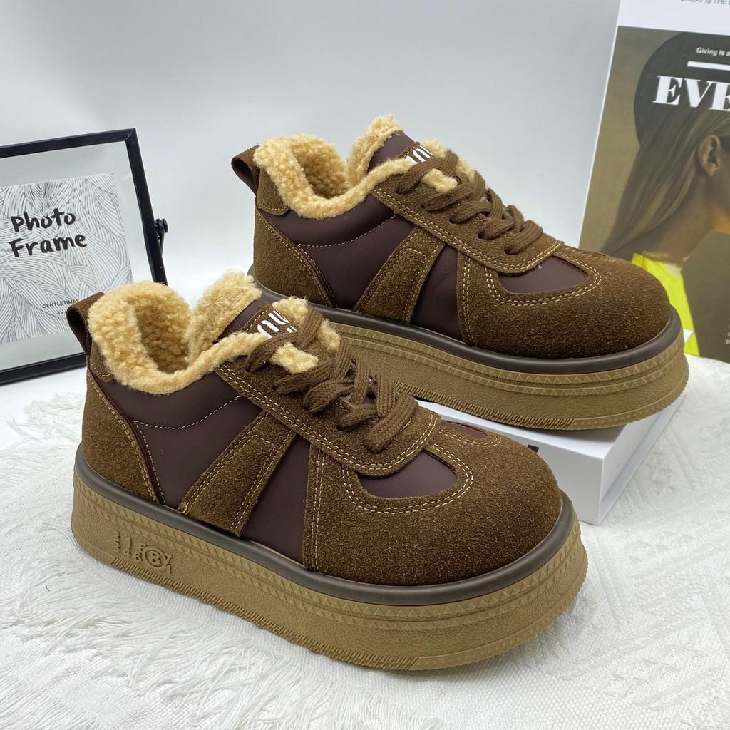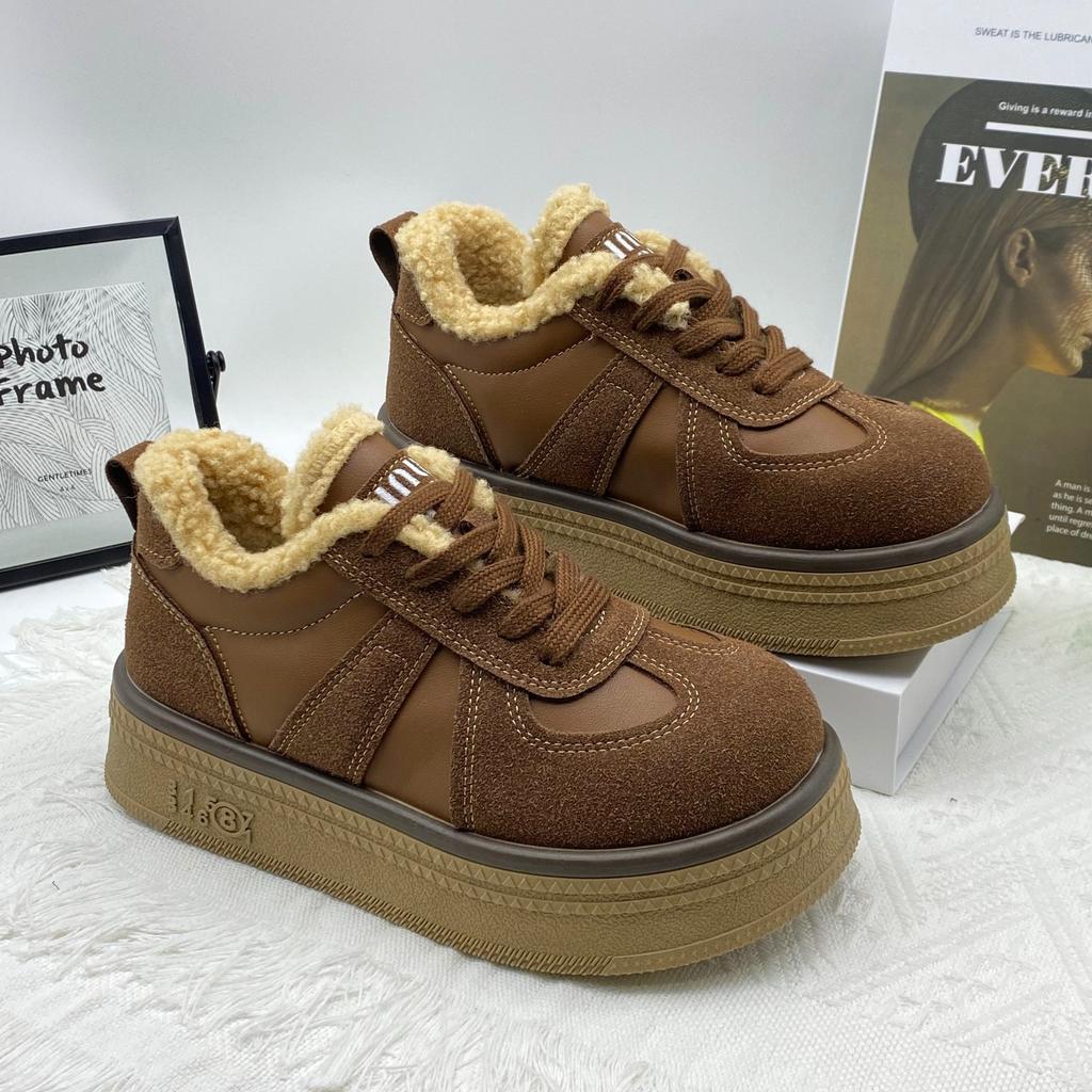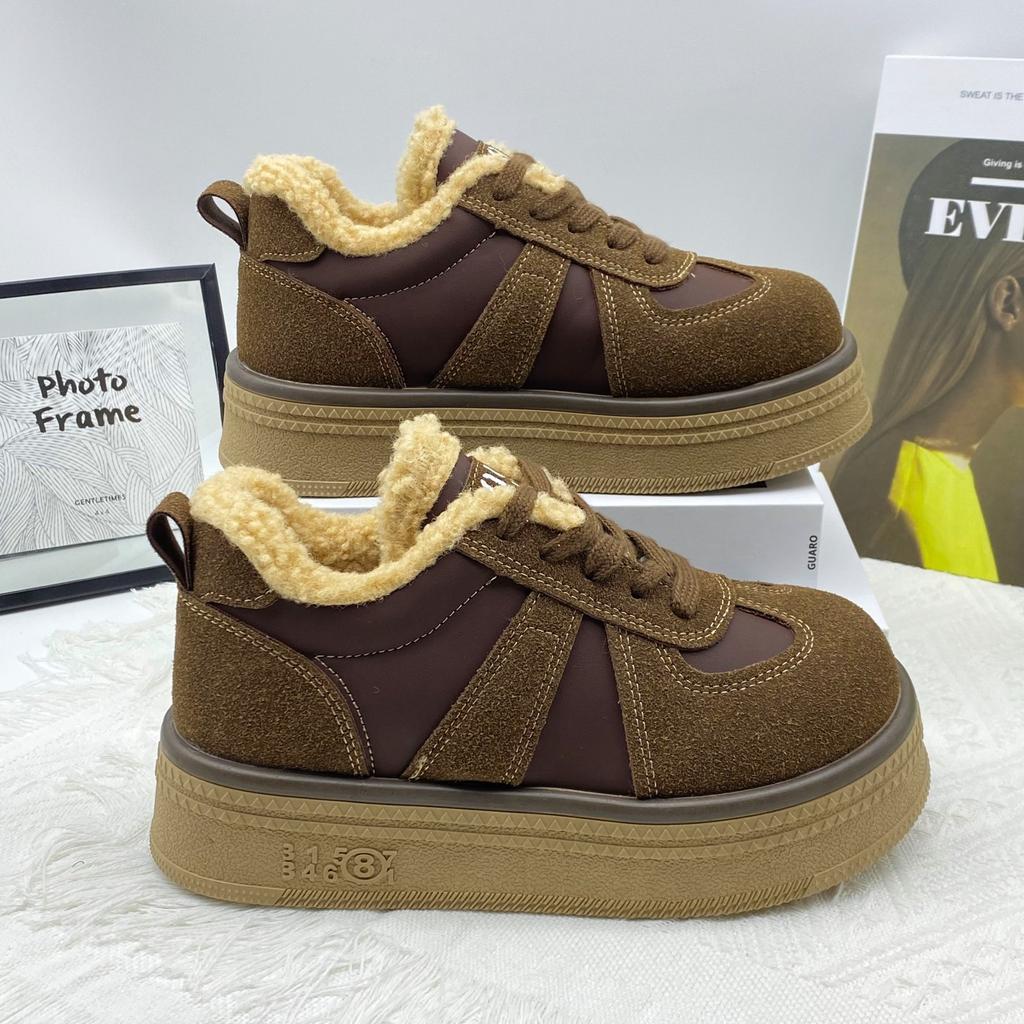 Толстоподошвенные флисовые кеды 2025 осень-зима женская обувь новая ретро спортивная и повседневная обувь флисовая обувь женские тренировочные туфли