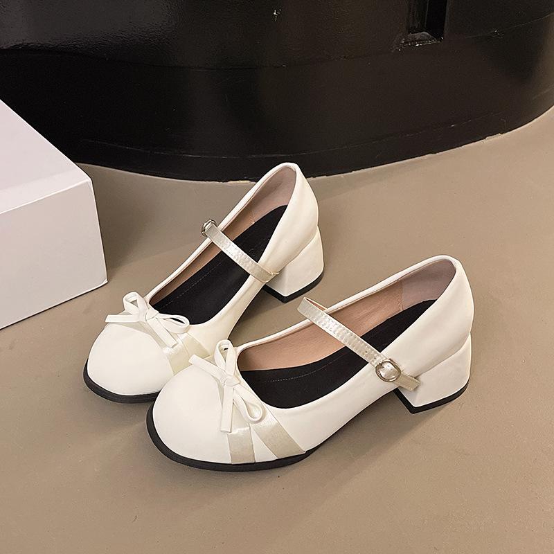 Белые туфли Мэри Джейн женские новинка весны 2025 года универсальные туфли с бантом французского типа с неглубоким горлом одинарные туфли в стиле колледжа маленькие кожаные туфли