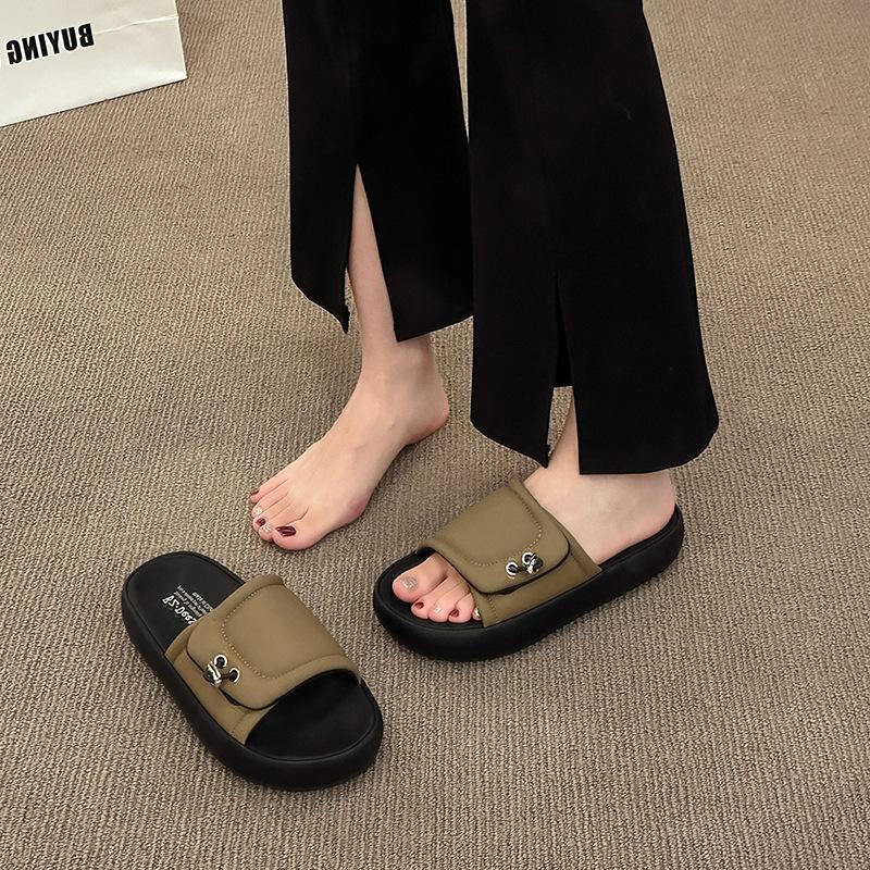 Высококлассные шлепанцы Xiaoxiangfeng на одной подошве для женщин 2025 лето на толстой подошве для улицы повседневные сандалии для пляжа на липучке с мягкой подошвой