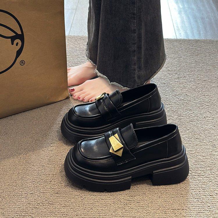Платформа Британский стиль маленькие кожаные туфли женские 2025 новая весна и осень однопедальные черные одинарные туфли Мэри Джейн лоферы