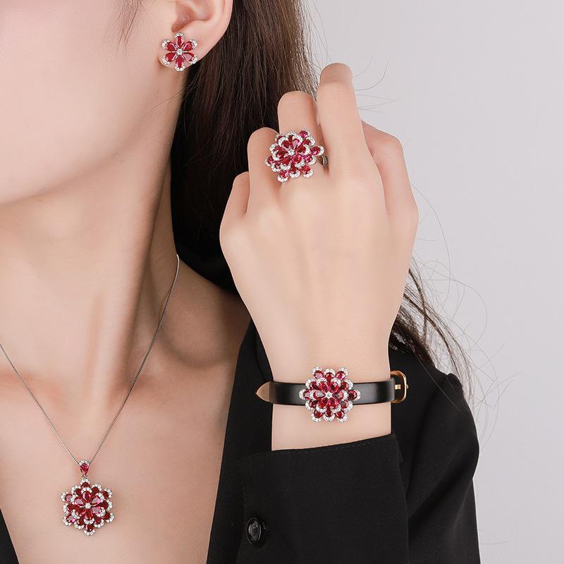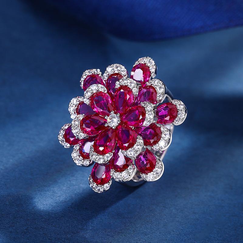 Ювелирные изделия Медное основание Позолоченное Имитация Красного Корунда Вечный Цветок Высококлассный Легкий Люкс Костюм Женский