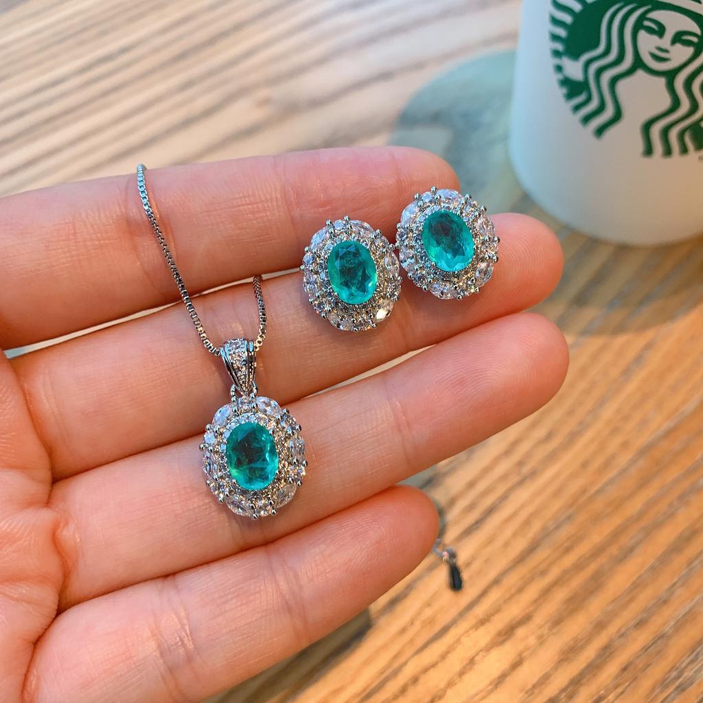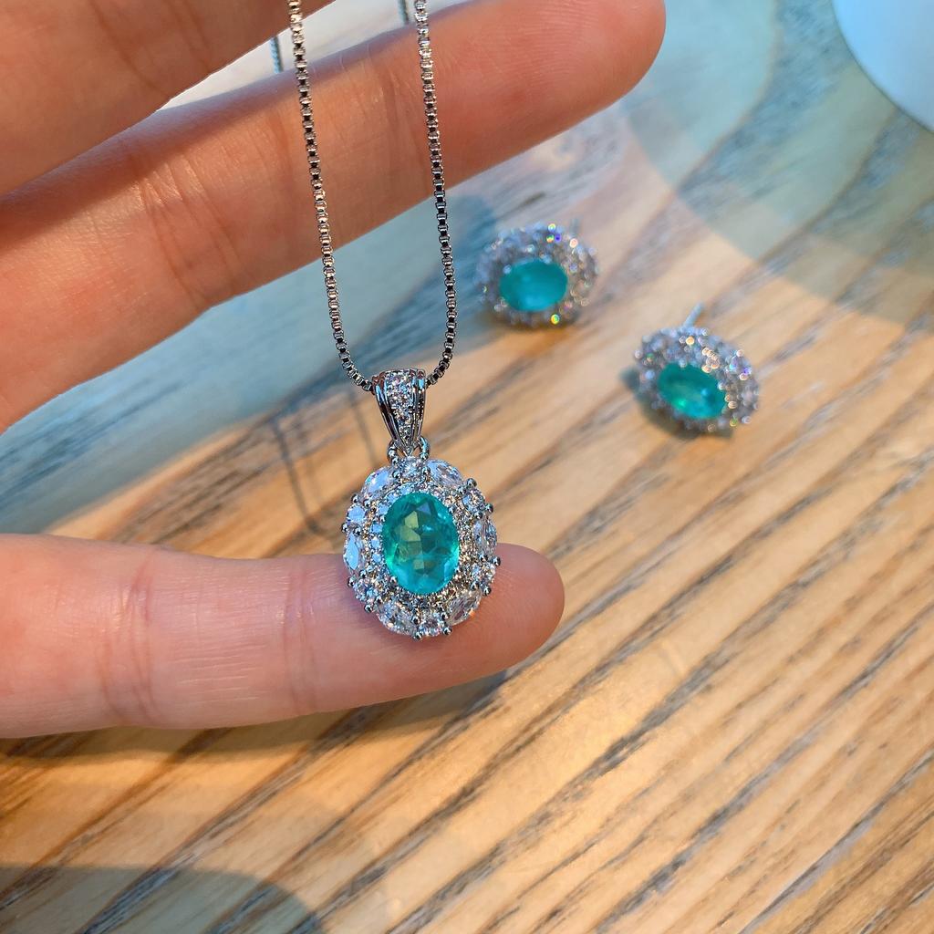 Huayei Jewelry Натуральная имитация Параиба Серьги Ретро Микровставка Бриллиант Голубой Турмалин Ожерелье Подвеска